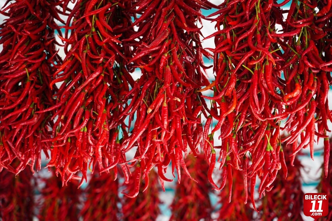 ” Yıllardır burada yetişen acı biberler kurutuluyor, pul biber oluyor ve sofralarımıza gelip tat veriyorlar”