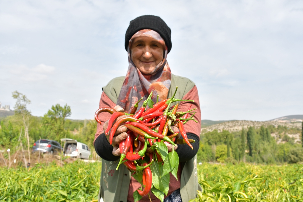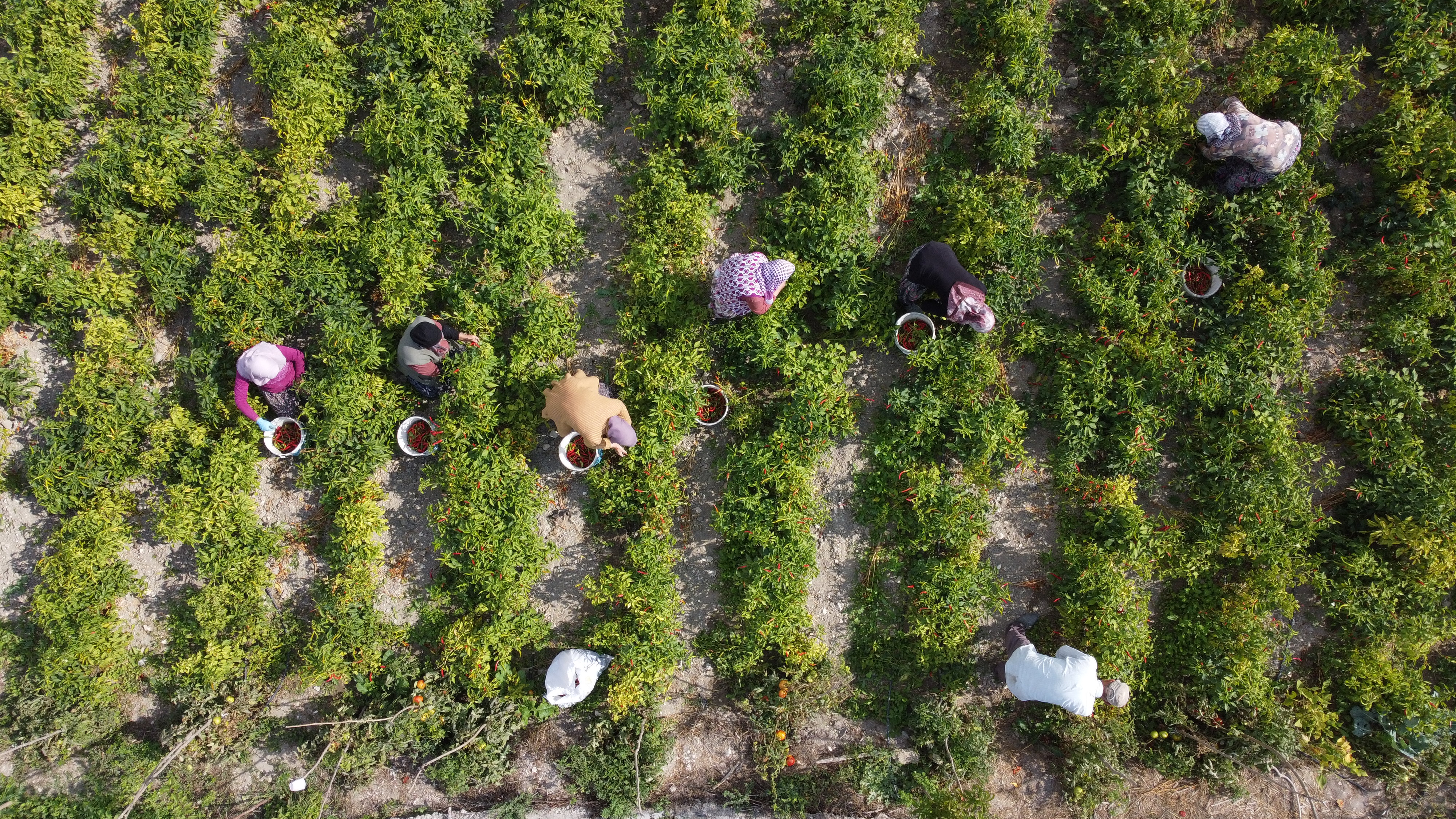 2023’te 260, geçen sene 200 dekar alanda yetiştirilen biberin ekim alanı, bu sene iklim değişikliğine bağlı kuraklık dolayısıyla 100 dekara geriledi.