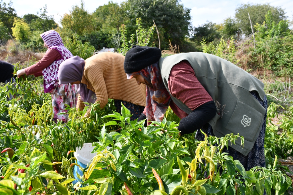 “Mart ayında tohumları çimlendiriyoruz. Nisan ve mayıs aylarında da bahçelere dikiyoruz. 1-2 ay böyle devam ediyor. Biberler ağustos ortasında kızarmaya başlıyor. Eylülde toplamaya başlıyoruz, iplere diziyoruz ve kurumaya bırakıyoruz. Pazarlamasını da kendimiz yapıyoruz.”