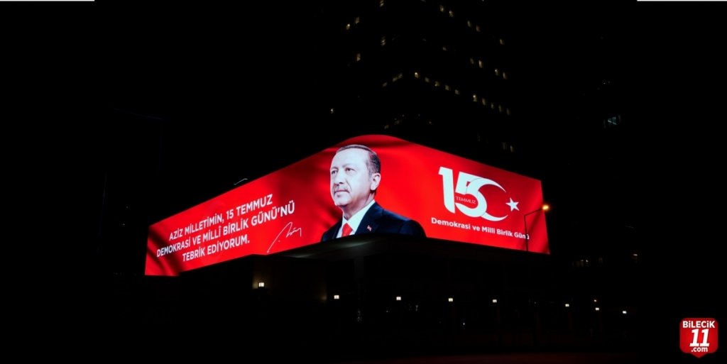 Cumhurbaşkanı Recep Tayyip Erdoğan’ın 15 Temmuz Demokrasi ve Millî Birlik Günü mesajı, Cumhurbaşkanlığı İletişim Başkanlığı dijital gösterim ekranında yayınlandı.