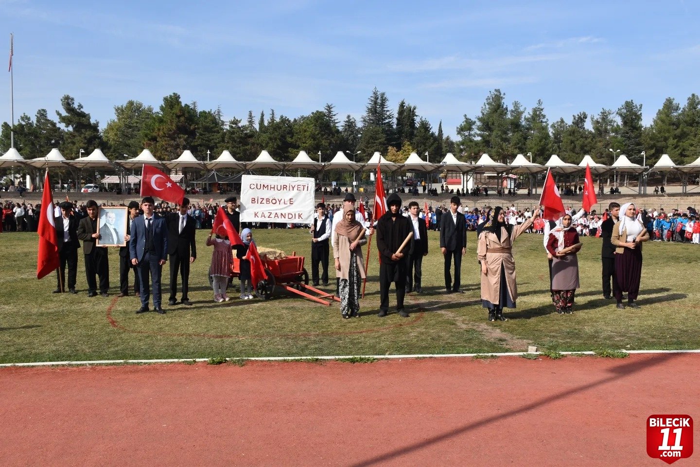Saygı duruşu ve İstiklal Marşının okunmasının ardından İlçe Kaymakamı Ömer Faruk Tuncer günün anlam ve önemini belirten konuşmasını yaptı. Tören, öğrencilerin günün anlam ve önemini belirten şiirlerini okuması, Cumhuriyet temalı gösterilerin sunumları ve yarışmalarda dereceye giren öğrencilere ödüllerinin verilmesinin ardından tören geçişi ile son buldu. Kutlama Programı saat 19:23′ de yapılan olan Cumhuriyet Yürüyüşü, Havai fişek gösterisi ve araç konvoyu ile devam etti.