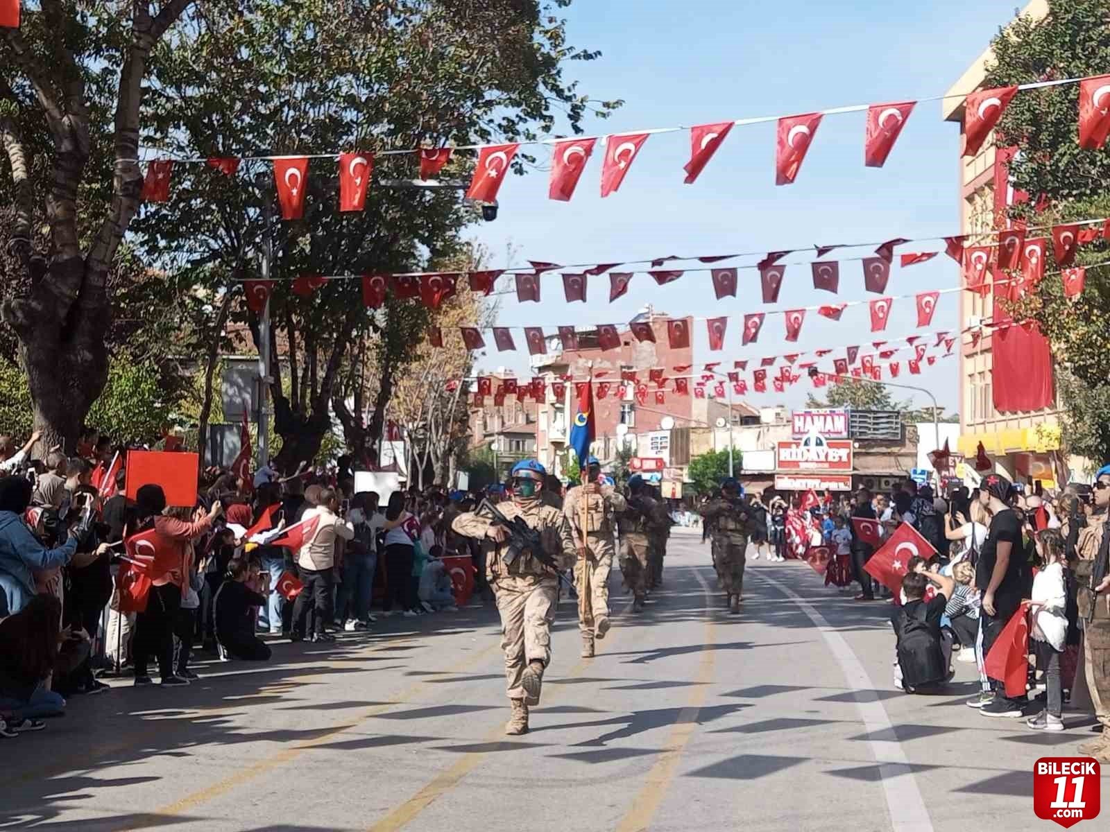 Konuşmaların ardından öğrenciler tarafından hazırlanan spor, halk oyunları ve tiyatro gösterisi sunuldu. Mehteran takımının gösterisi sonrası Vali Yiğitbaşı, Başkan Zeybek ve askeri erkan vatandaşların bayramını kutlarken, tören askeri birlik ve öğrencilerin Türk bayrakları ile gerçekleştirdikleri geçit töreninin ardından son buldu. – İHA