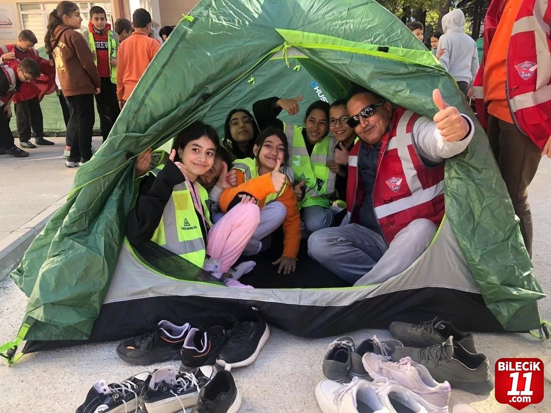 Çocuklar teorik eğitimin ardından çadır kurmanın tekniklerini öğrendi. – İHA