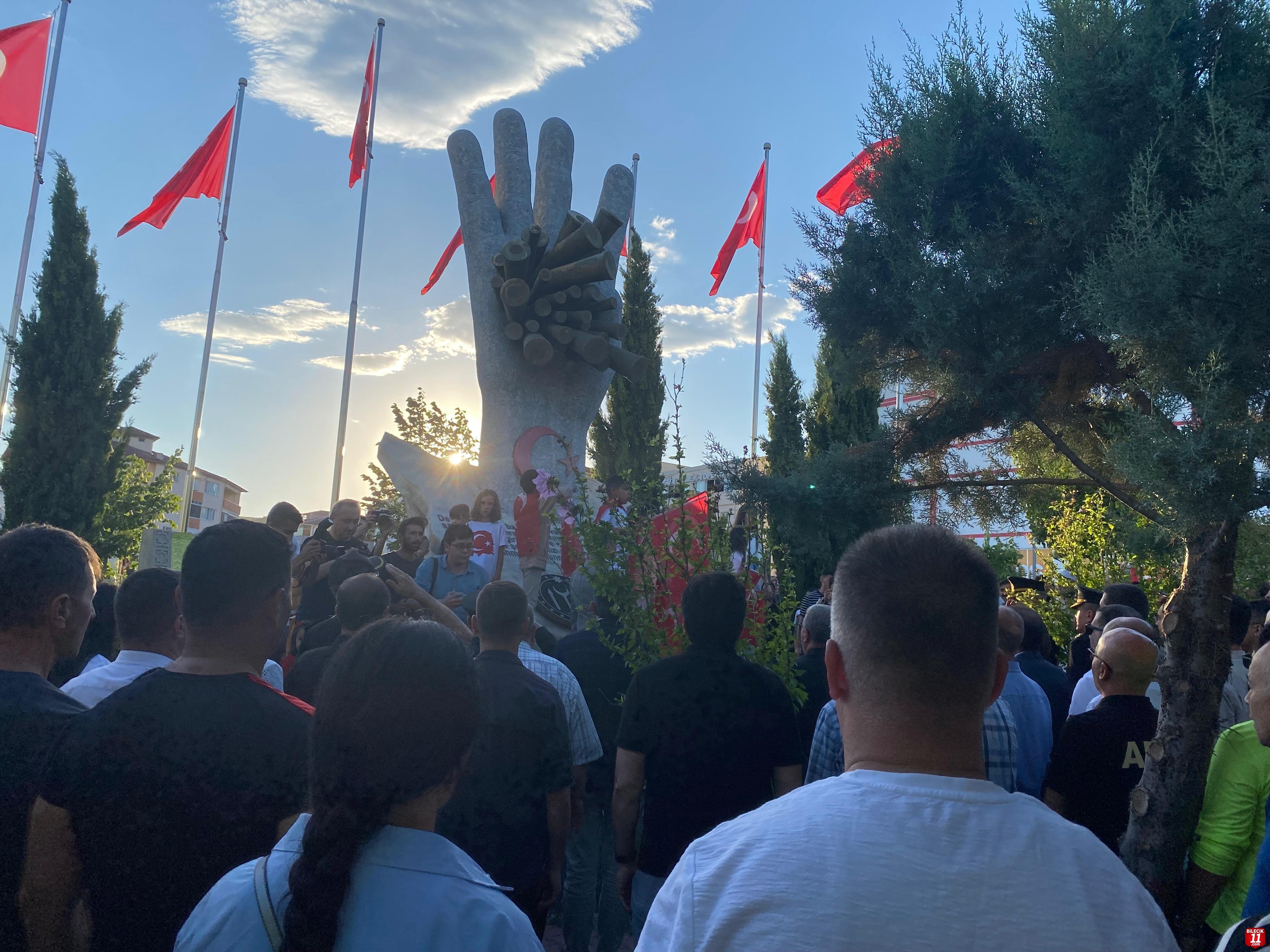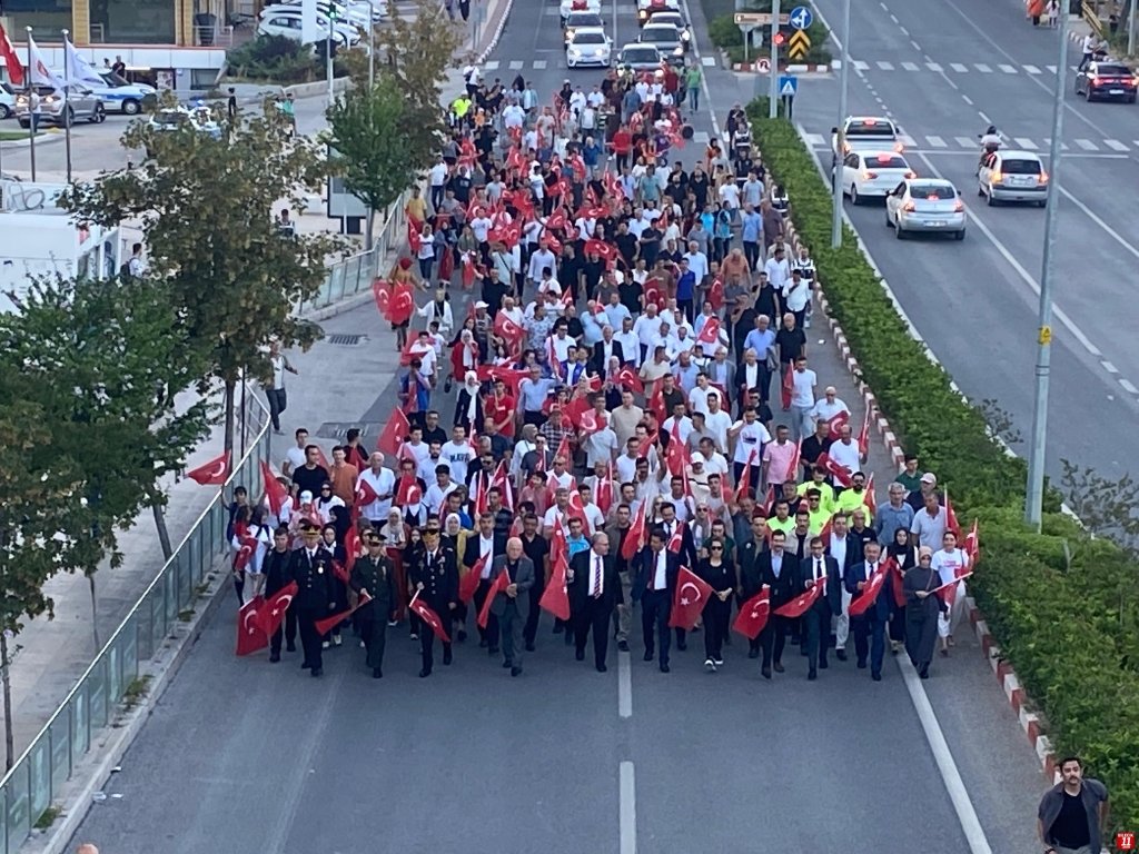 Sabah Şehitlik ziyareti ile başlayan program, 15 Temmuz Şehitler Anıtı’nda devam etti. Burada, saygı duruşu ve İstiklal Marşımızın okunması ile başlayan program, şehitlik anıtına karanfil bırakılması, Kuran-ı Kerim Tilaveti ve dua edilmesinin akabinde Cumhuriyet Meydanına kadar devam eden yürüyüş ile devam etti.