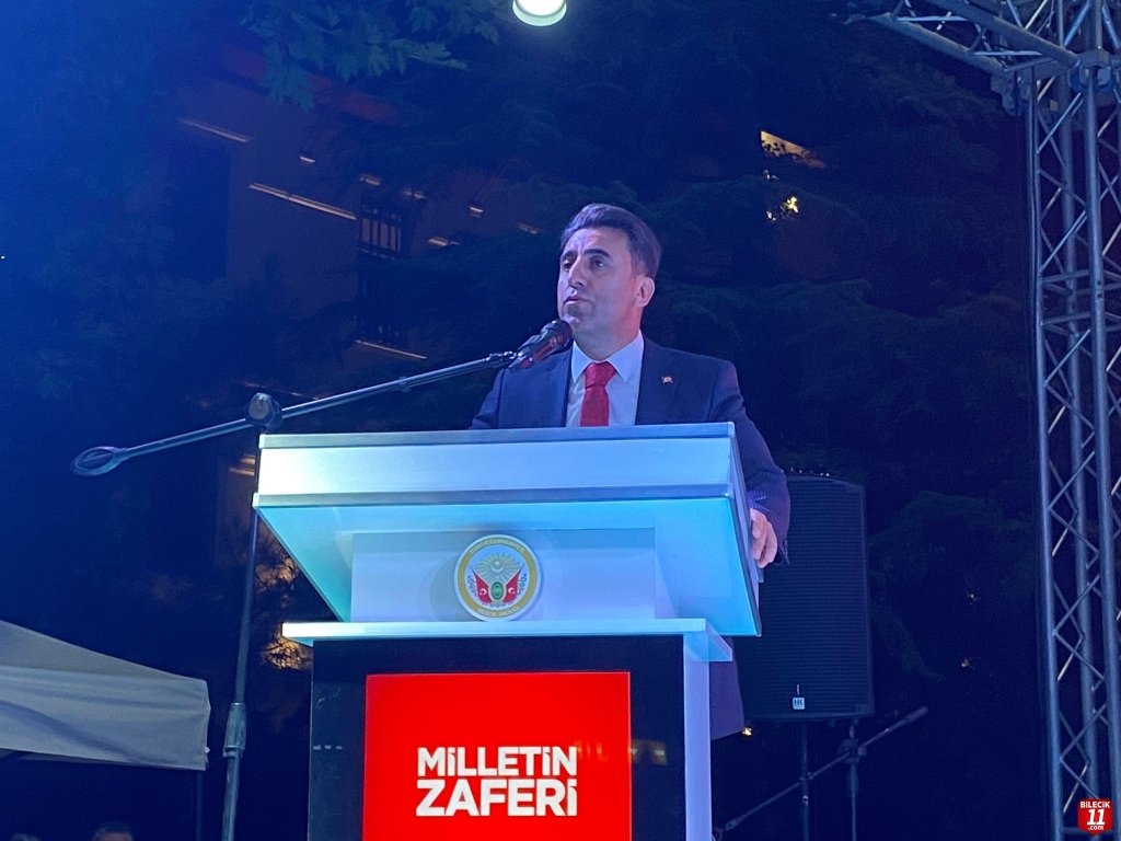 Burada konuşma gerçekleştiren Bilecik Valisi Şefik Aygöl, “Hakimiyet, kayıtsız, şartsız milletindir.” vurgusu yaptı.