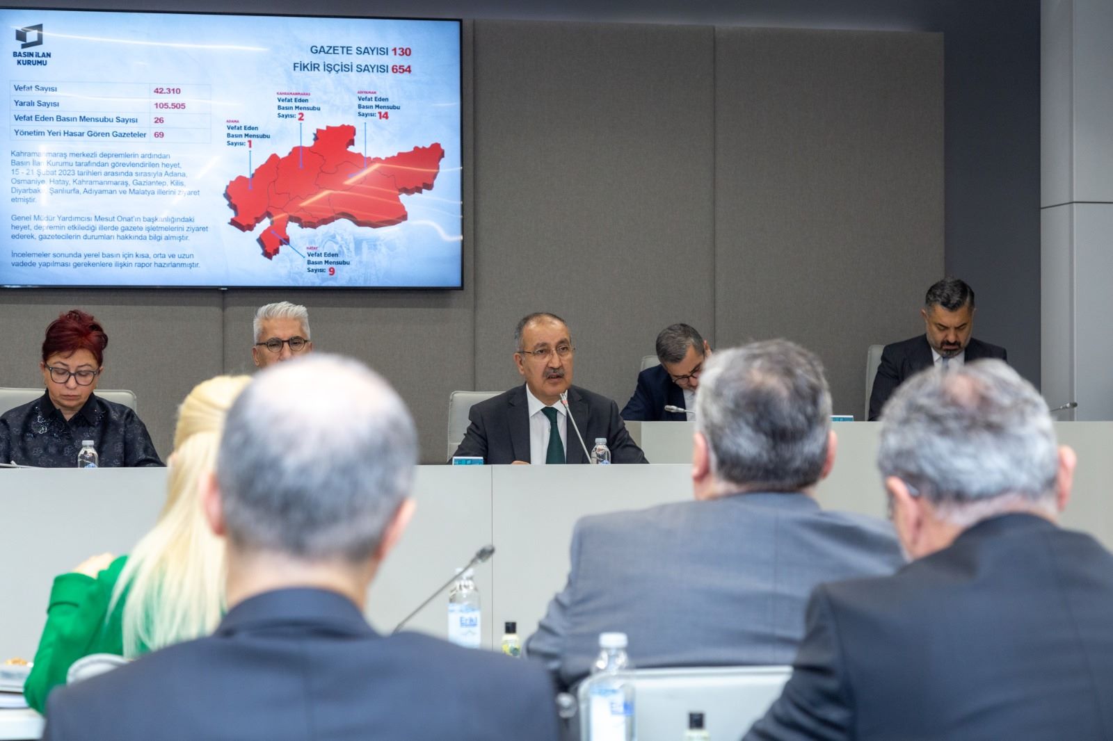 Görevlendirdiği heyetin 15-21 Mart 2023 tarihleri arasında depremin etkilediği illerdeki basın kuruluşları ve gazetecileri ziyaret ederek durumlarına ilişkin ayrıntılı bir rapor hazırladığını belirten Erkılınç, afetin ilk anlarından itibaren Kurum olarak üzerlerine düşeni yaptıklarını, deprem bölgesindeki basın çalışanlarının sahada da yanında olduklarını söyledi. Bölgede 130 gazete işletmesinin ve 654 gazete çalışanının depremden etkilendiği bilgisini veren Erkılınç, vefat eden 26 basın çalışanına rahmet dileyerek üzüntüsünü dile getirdi.