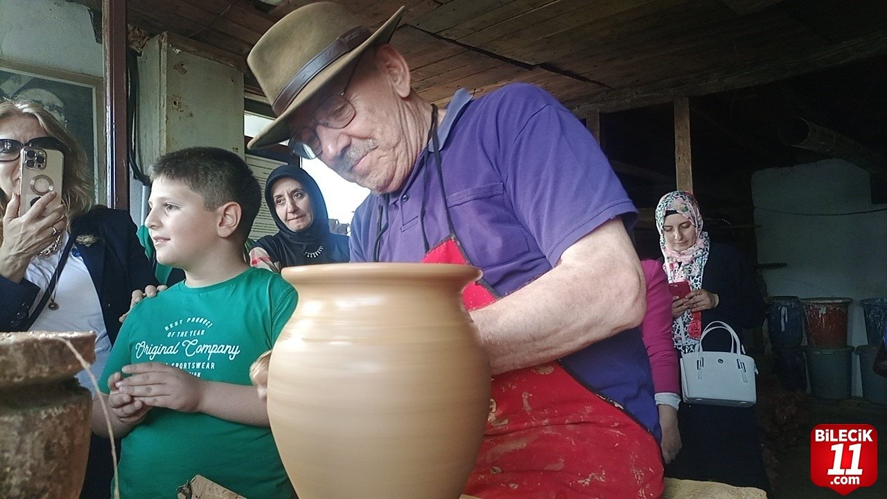 Bilecik’te 146 yıldır çömlekçilik sanatının yaşatıldığı Pazaryeri ilçesinin Kınık köyünde çömlekçilik mesleğinde 68 yılını tamamlayan 81 yaşındaki çömlek ustası Salim Yaşar çömlek atölyesinin kapılarını ziyaretçilere açıp çömlek sanatını ve çömlek yapımını hakkında ziyaretçileri bilgilendirmeye devam ediyor.