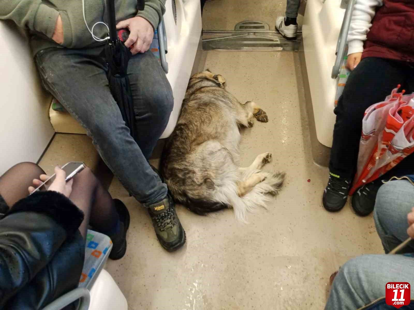 Eskişehir’de sabah soğuğunda üşüyen bir köpeğin tramvaya binerek ısınmaya çalışması yolcuların ilgisini çekti.