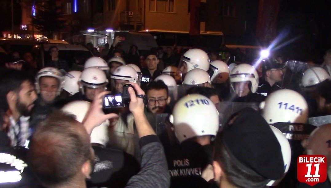 Dün akşam saatlerinde Anadolu Üniversitesi Yunus Emre Kampüsü önünde bir araya gelen yaklaşık 30 kişilik grup, Fatih Mahallesi Nimet Sokak’ta bulunan Mükrime Hatun Kız Öğrenci Yurdu’na yürüyüş yaptı. Geçtiğimiz günlerden bir öğrencinin intihar ettiği yurdun bulunduğu sokağın girişinde basın açıklaması yapan grup, polis ekiplerinin uyarılarına hakaretle karşılık verip saldırıda bulundu. Eylemci grup ile polisler arasında arbede çıktı. Çıkan arbedede yüzüne yumruk atılan kadın komiserin de içinde bulunduğu 5 polis memuru yaralandı. Eylemci grubun içinde bulunan 4 kişi ise gözaltına alındı. Tedavi görmek için hastaneye giden polislerin durumlarının iyi olduğu öğrenildi.