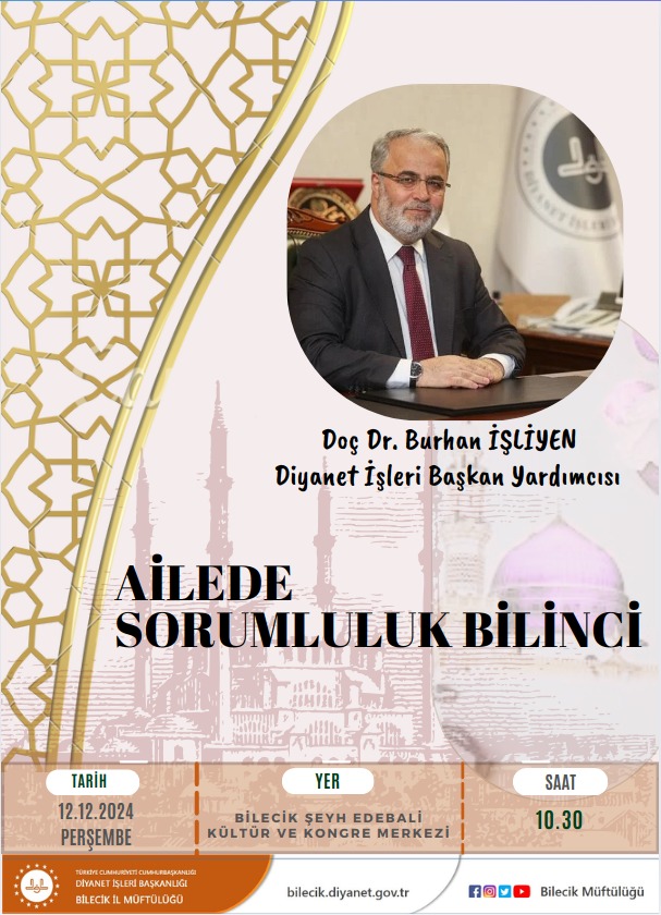 Diyanet İşleri Başkan Yardımcısı Doç. Dr. Burhan İşliyen Bilecik’e geliyor.