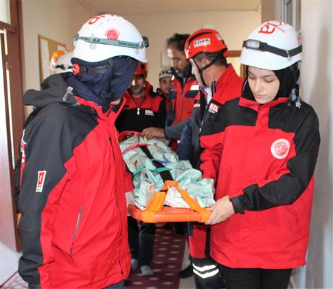 Osmanlı Erkek Hafızlık Yatılı Kur’an Kursu binasında yapılan tatbikata,  Vali Dr. Kemal Kızlıkaya İl Müftüsü Ali Erhun, AFAD İl Müdürü Hayri Demirel ve kurum amirleri katıldı.