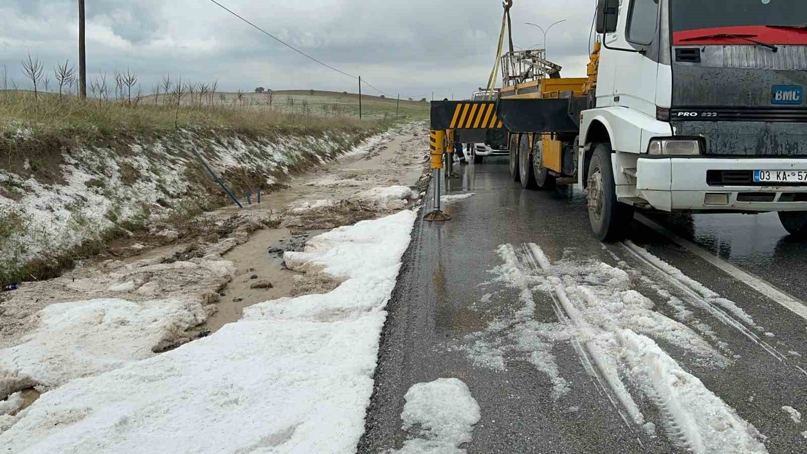 Kaza, Bolvadin-Emirdağ karayolu dişli beldesi yakınlarında meydana geldi. Edinilen bilgilere göre, bölgede aniden bastıran dolu yağışı sonrası sürücüsünün ismi henüz belirlenemeyen 26 AGV 979 plakalı otomobil kontrolden çıktı. Savrulan araç orta refüje girip bir süre sürüklendikten sonra sulama kanalına düştü. Kazada öğlen ya da yaralanan olmazken sürücü kendi imkanları ile araç içerisinden çıktı. Olay esnasında yolun boş olması ise yaşanabilecek bir olumsuzluğun önüne geçti. Kazanın ardından kanala düşen aracın çıkarılması esnasında yoldaki trafik bir süre durduruldu.