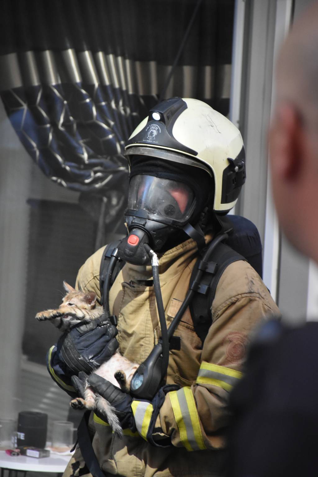 Yangına müdahale eden kadın itfaiyeci Seray Başol, dairede yerde hareketsiz yatan bir kedi buldu. Kediyi dışarı çıkararak oksijen veren Başol, baygın kedinin kendine gelmesini sağladı.