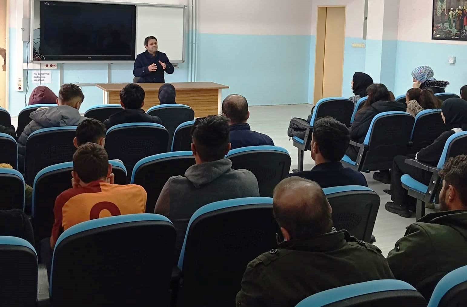 Konferansa Kaymakam Büşra Güllü Özpınar, İlçe Milli Eğitim Müdürü Muhammed Şehirli, öğretmenler ve öğrenciler katıldı. – İHA