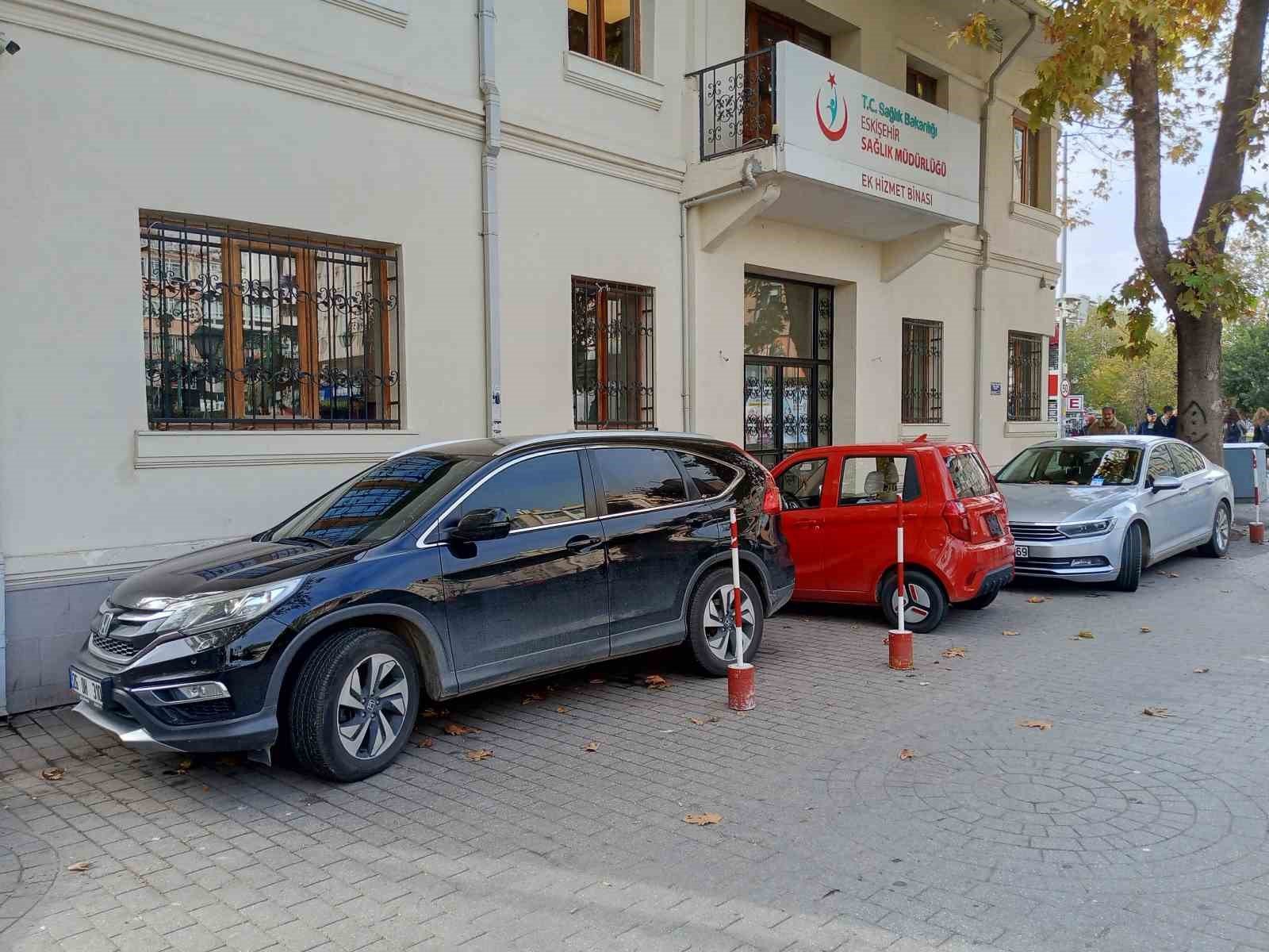 Eskişehir’de park yapılmasının yasak olduğu bilinen bir bölgeye araç bırakan bazı duyarsız sürücüler Eskişehir Sağlık Müdürlüğü’nün aracına ait alana da park yaptı.