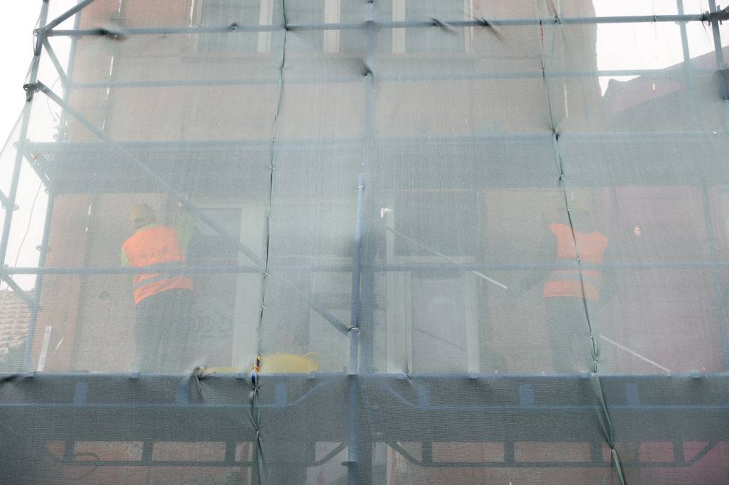 Saraçlar Caddesi'ndeki binalara kurulan iskelelerde 80 usta ve uzman ekip çalışmalarını sürdürüyor.