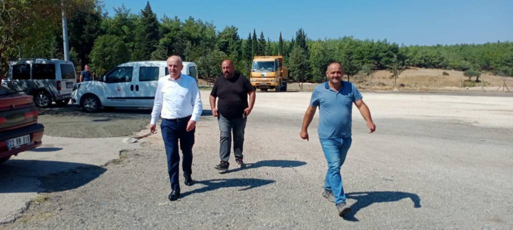 Keşan Kaymakamı Cemalettin Yılmaz, köylere atılan sıcak asfalt çalışmalarını inceledi.