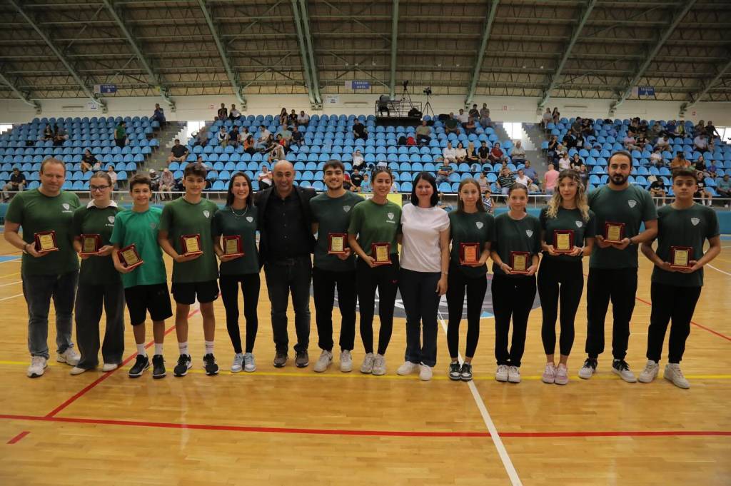 Akın, yüzme branşında büyük başarılara imza atan sporculara ve antrenörlere teşekkür plaketi takdim etti.