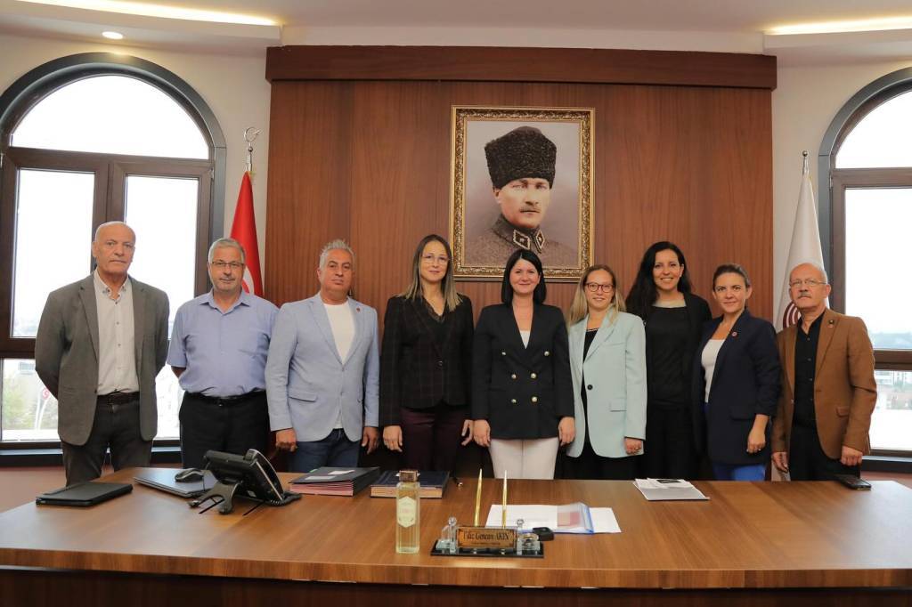 Edirne Merkez Mahalle Muhtarları Derneği Başkanı Aykut Yaman ve yönetim kurulu üyesi muhtarlar, Edirne Belediye Başkanı Filiz Gencan Akın'ı ziyaret etti.