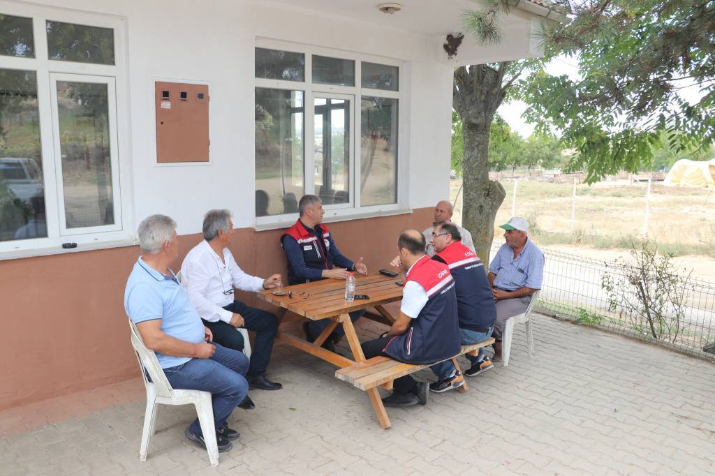 Köy halkıyla birlikte merada incelemede bulunan Bayazıt, muhtardan bilgi aldı.