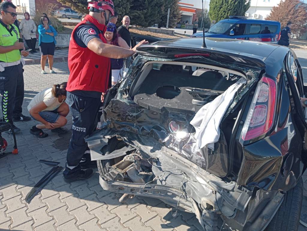 Otomobilde sıkışan bir yaralı, Balıkesir Büyükşehir Belediyesi İtfaiye Daire Başkanlığı Edremit Grup Amirliği ekiplerince kurtarılarak sağlık ekiplerine teslim edildi.