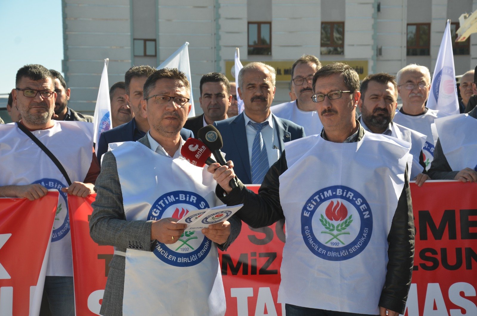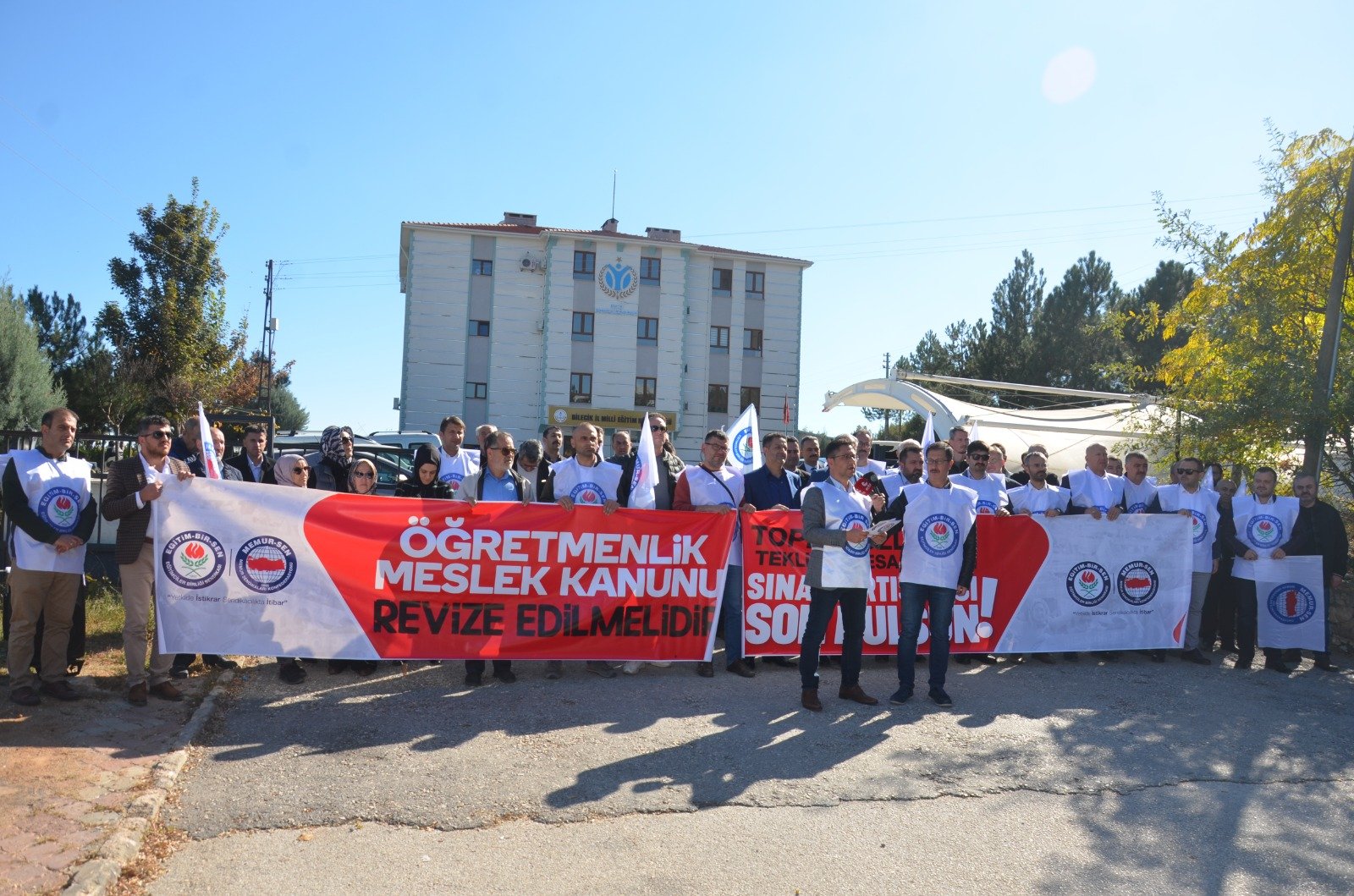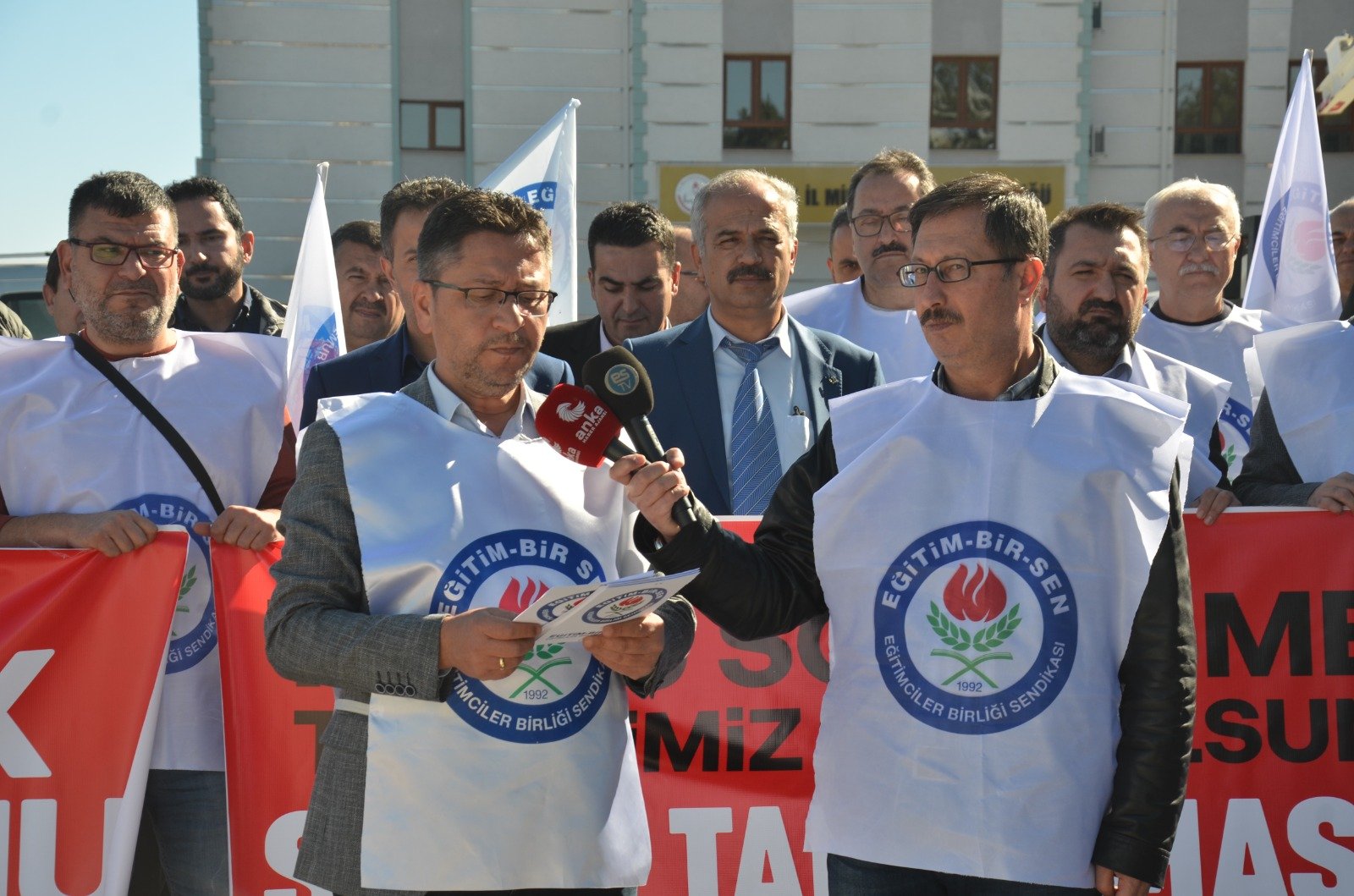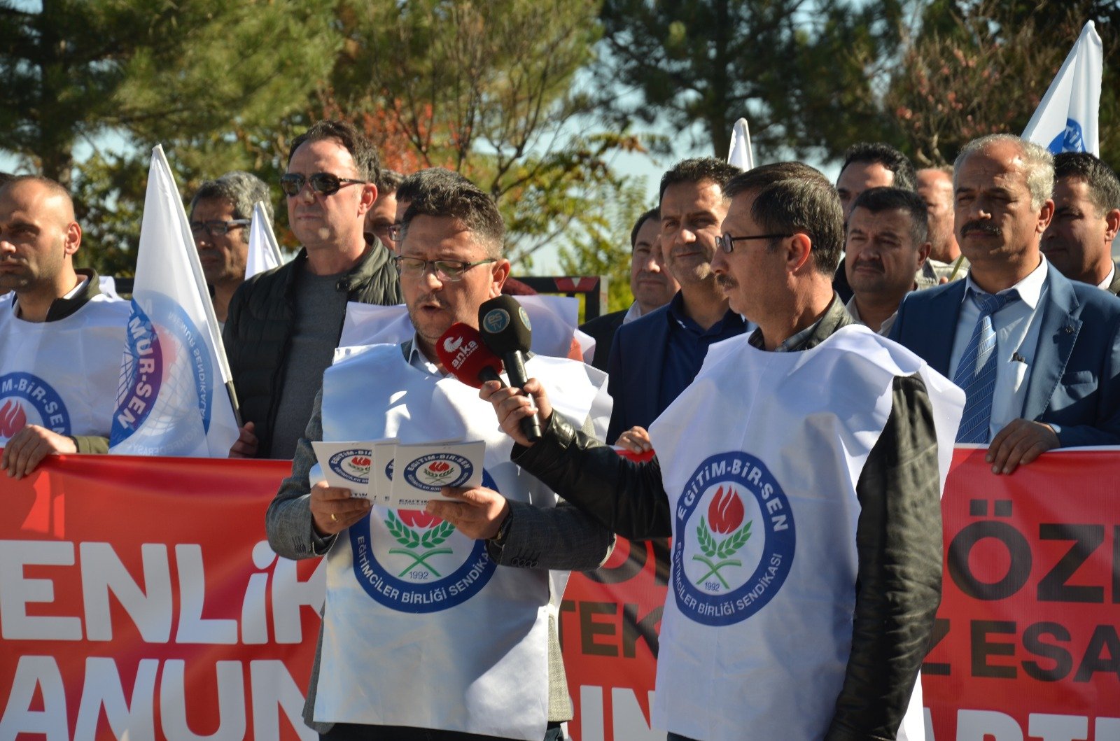 Milli Eğitim Müdürlüğü önünde sendika üyeleriyle birlikte basın açıklaması yapan Selöz, ”Meslek kanunu mevcut haklarımızı koruyacak, kariyer basamaklarında hizmet süresini önceleyecek şekilde yeniden düzenlenmelidir.” ifadesini kullandı.