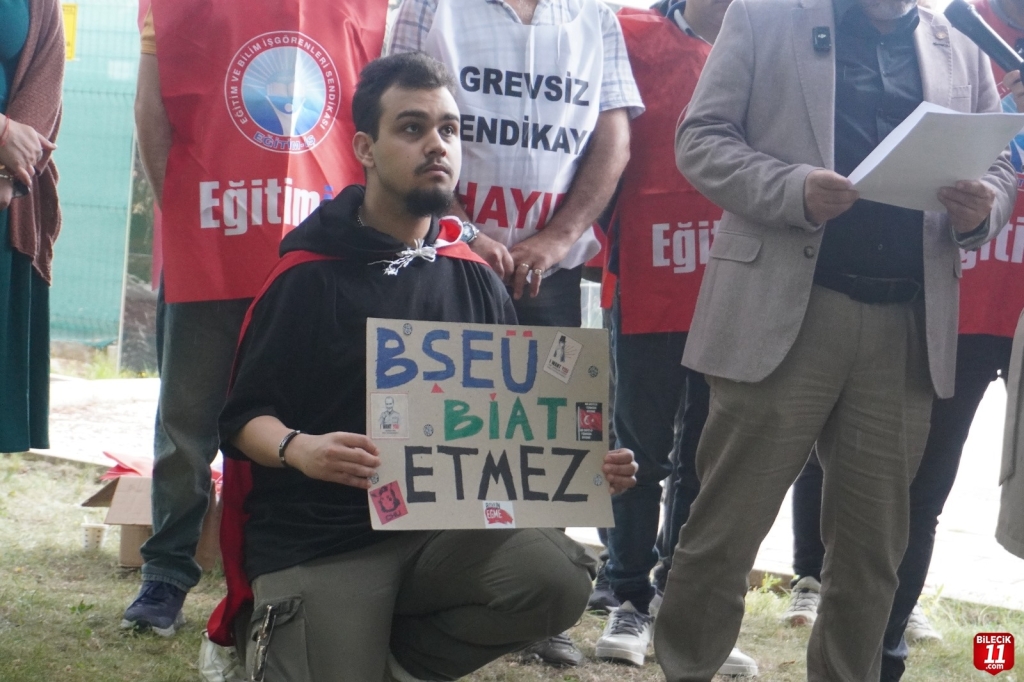 Eğitim ve Bilim İşgörenleri Sendikası (Eğitim-İş) üyeleri Şeyh Edebali Üniversitesi’nde düzenledikleri basın açıklaması ile üniversitelerde yaşanan eğitim ve akademik sorunlara ilişkin eleştirilerde bulundular. Eğitim İş Üniversite Temsilcisi Prof. Dr. Taner Kılıç, “Üniversitelerin özgürlük ve özerklik mücadelesine olan desteğimizi kararlılıkla sürdürecek, hukuksuzca yapılan işlemleri yargıya taşıyacağız.” vurgusu yaptı.