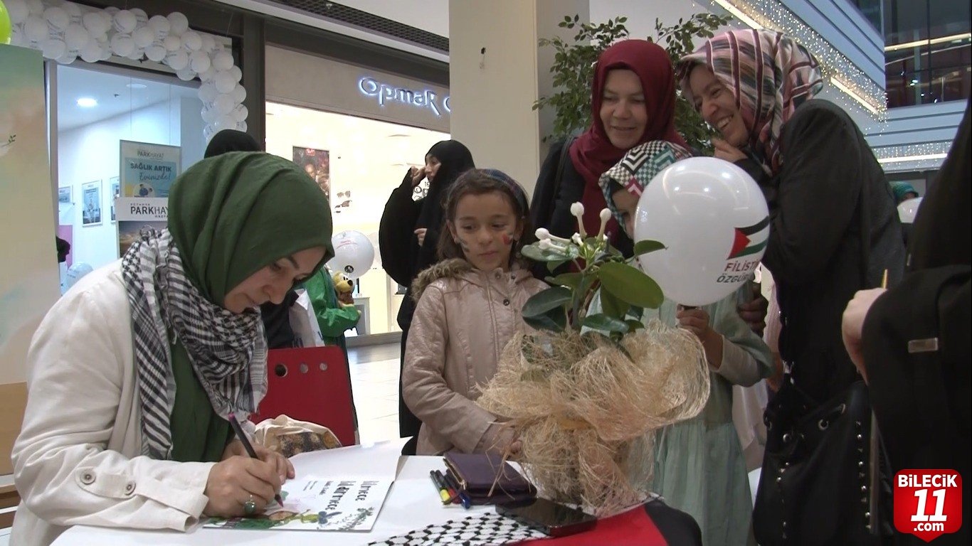 Çocuk Gelişimi Öğretmeni Koyuncu, Sera AVM’de ’Bilmece bildirmece’ isimli kitabını Gazzeliler için imzaladı.