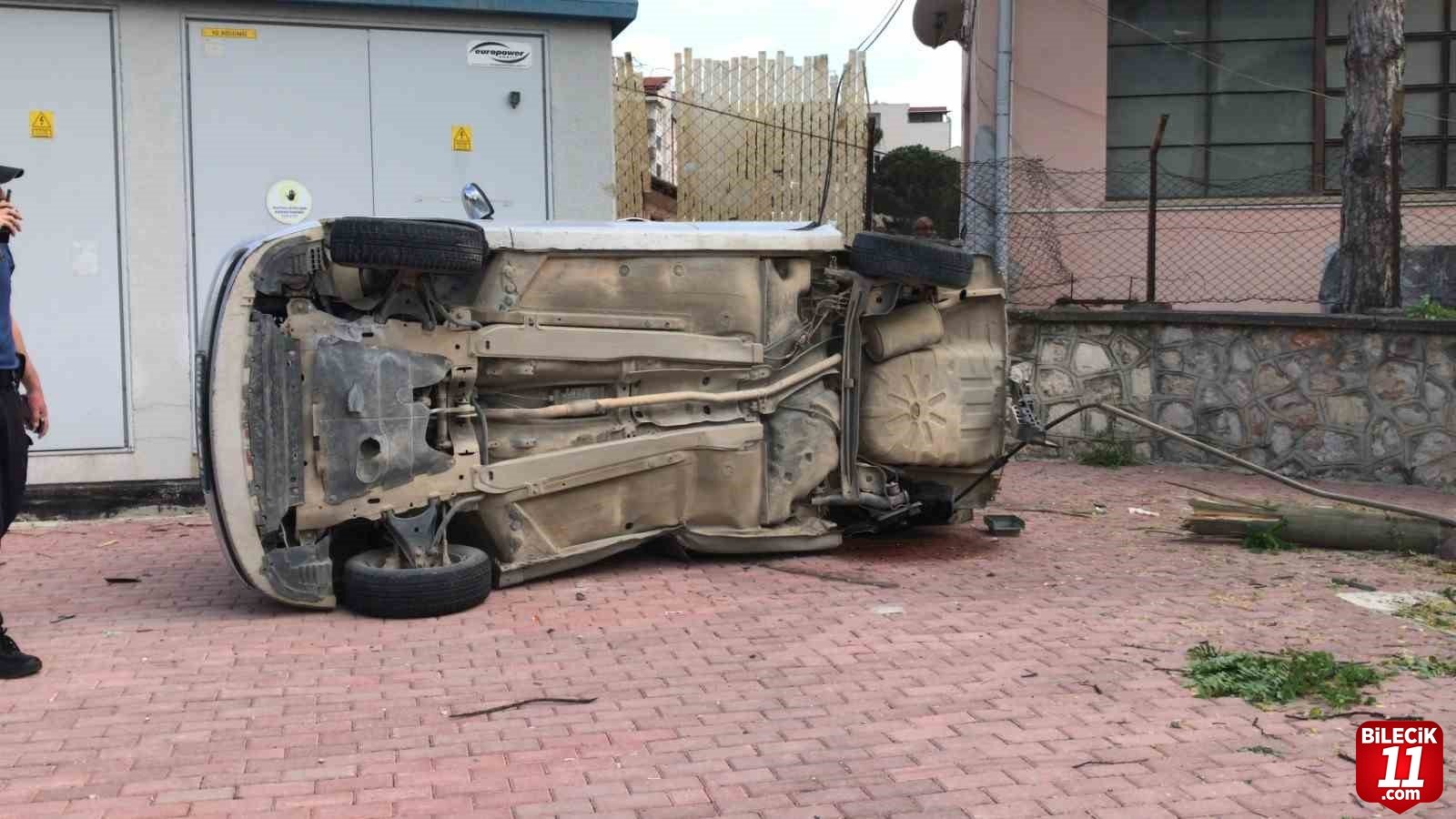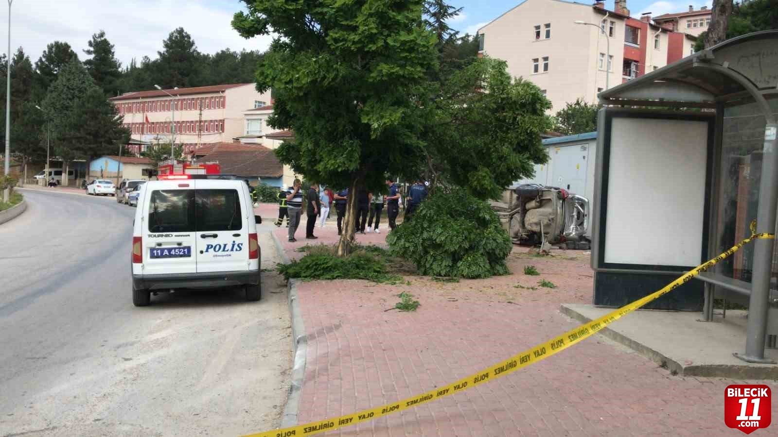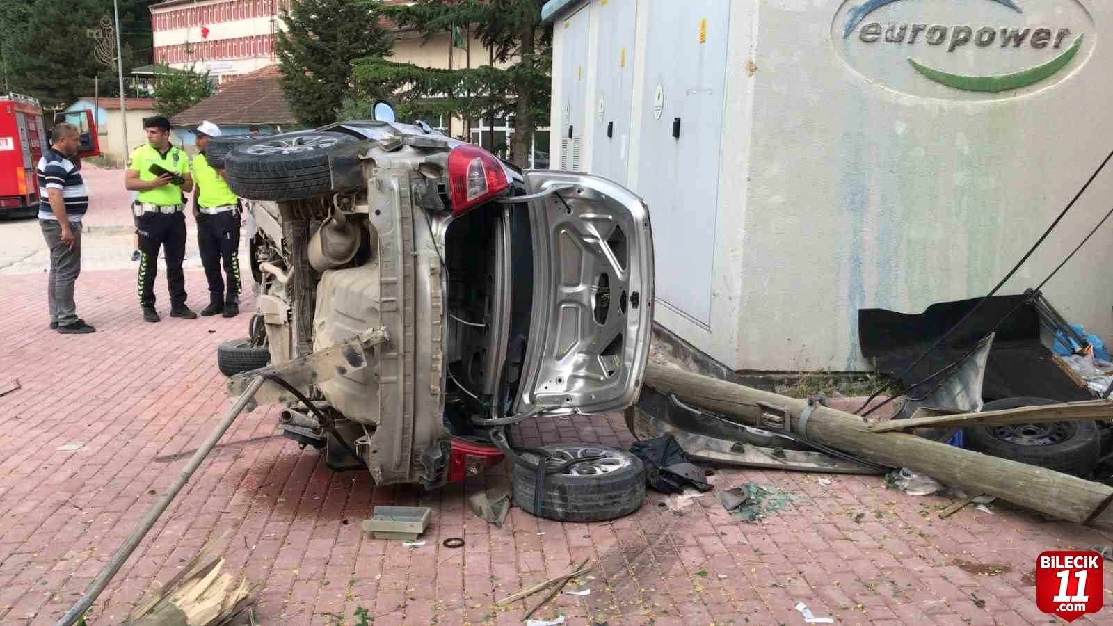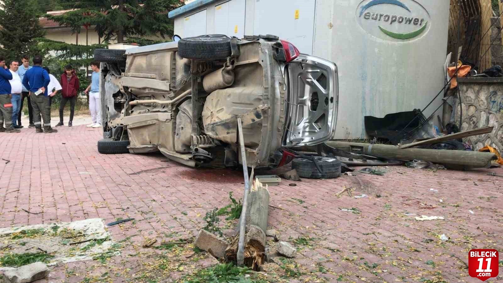 Bilecik merkezden İstasyon Mahallesi istikametine seyir halindeki 11 AAN 405 plakalı otomobil sürücü M.Y. (15) Karayolları Kavşağı’nı geçtikten sonra direksiyon hakimiyeti kaybetti. Kontrolden çıkan araç önce yol kenarında bulunan kaldırıma çarpmasının ardından elektrik direğine çarparak takla attı. Meydana gelen kazada sürücü ile birlikte otomobilde yolcu olarak bulunan M.C. (15), B.G. (15) ile E.Y. (15) yaralandı. Yaralılar olay yerinde yapılan ilk müdahalesin ardından Bilecik Eğitim ve Araştırma Hastanesine kaldırıldı.