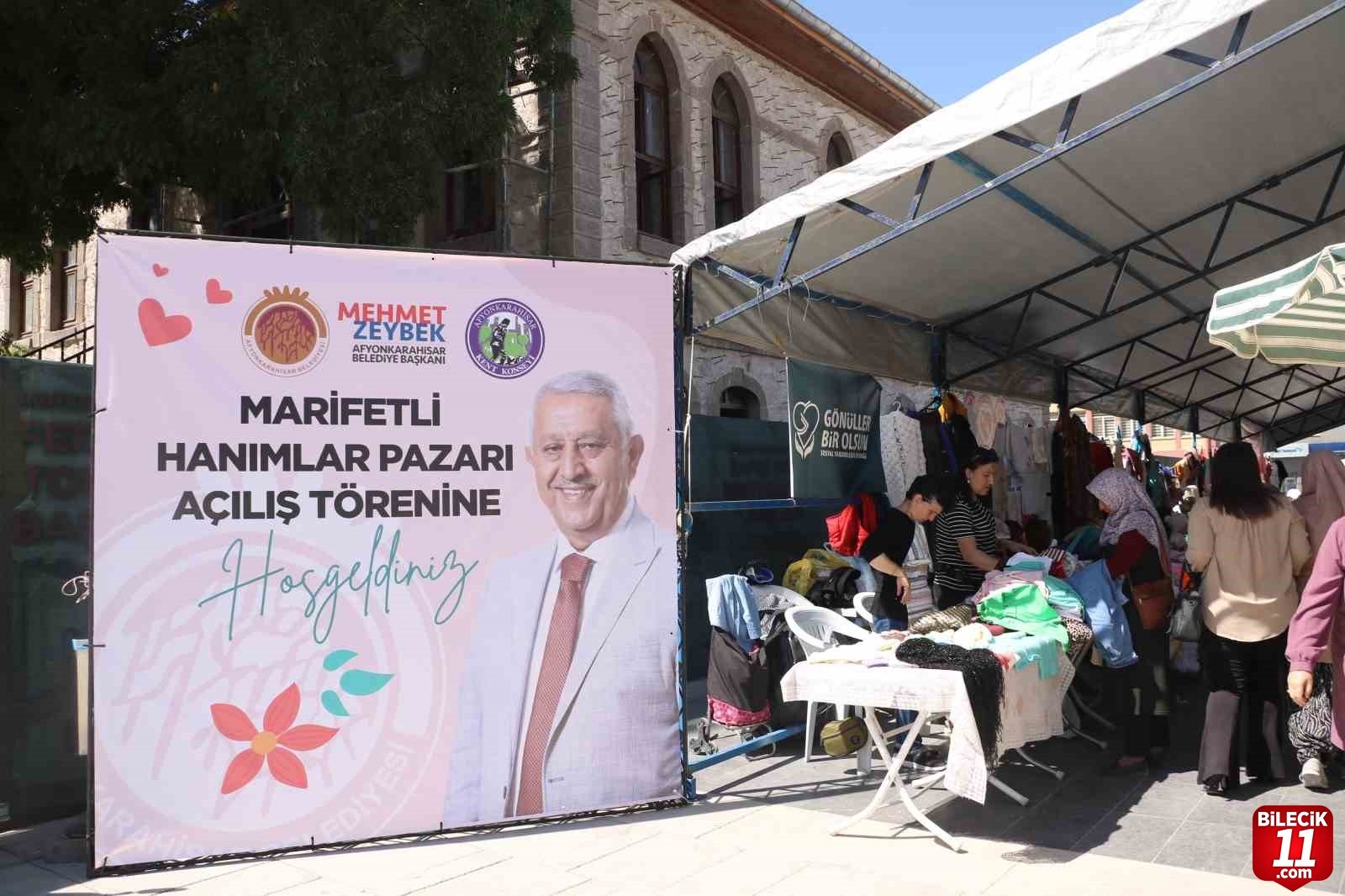 Kent merkezinde Afyonkarahisar Belediyesinin desteği ile ev hanımı kadınların ürettiği, emek harcadığı ek gelir sağlamak ve zamanlarını doldurmak isteyerek yaptığı ürünler görücüye çıktı. Belediyenin destekleri ile açılan pazarda kadınların yaptığı el emeği göz nuru ürünler ekonomik kazanca dönüştü. Yapılan el emeği ürünlerin satılması ve kadınların ailelerine destek sağlaması için ‘Marifetli Hanımlar Pazarı’ kuruldu. Kadınlar yaptıkları el emeği örgü, takı, yiyecek ve yetiştirdikleri çiçek gibi ürünleri bu pazarda beğeniye sunuldu. Pazarda ördüğü örgü ürünler satan Lütfiye Kumartaşlıoğlu, emekli olduktan sonra boş zamanlarımı kurslara giderek harcadığını belirterek “Belediyenin açtığı bu pazarla yaptığımız el emeği ürünleri pazarlama şansı bulduk. Sattığımız bu ürünler bize ekonomik olarak destek oldu ayrıyeten de yaparken harcadığımız masrafı çıkarttık” dedi.