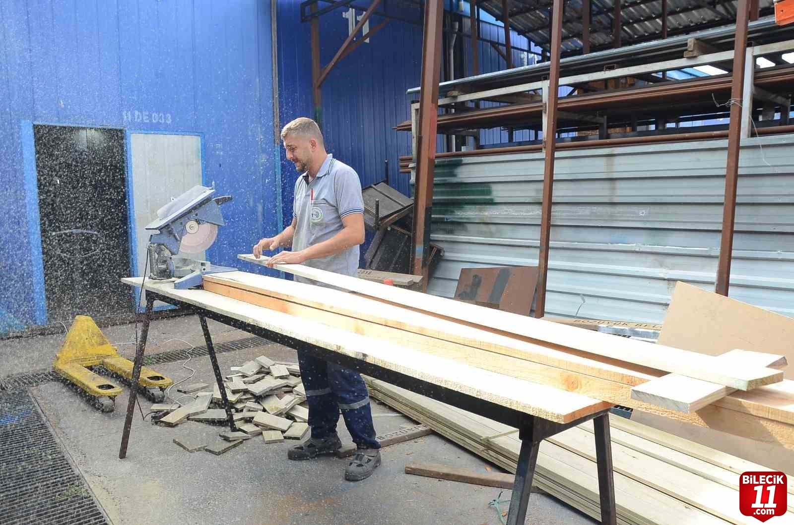 Bilecik’in Bozüyük ilçesinde Boztram güzergâhındaki elektrik direkleri Bozüyük Belediyesi bünyesindeki marangoz atölyesinde üretilen ve dekoratif bir görünüm sağlayan ahşap kaplamalar ile kaplanıyor.