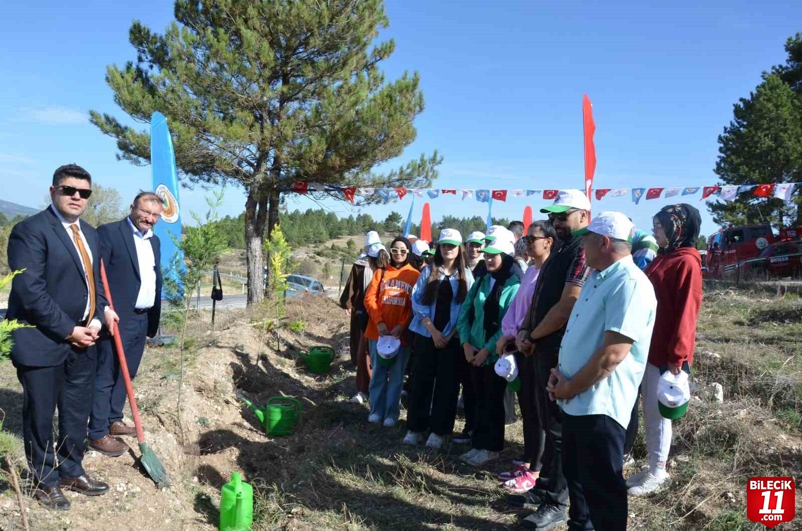 Kaymakam Furkan Seyman, Belediye Başkanı Hüseyin Doğan, Emet Orman İşletme Müdürü Osman Aksoy, Müftü İsmail Çınar, protokol üyeleri ve öğrencilerin katıldığı etkinlikte 100. Yıl Hatıra Ormanına 100 karaçam fidanı dikildi. – İHA