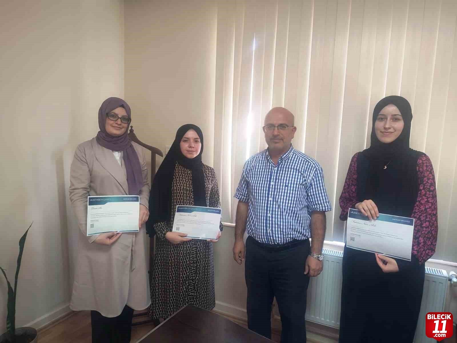 İlçe Müftüsü İsmail Çınar, 3 stajyer öğrencinin güzel bir kazanım sağladıklarını belirterek, öğrencilerin katılım belgelerini takdim etti. – İHA