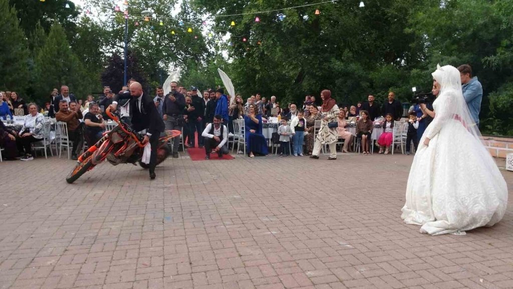 Kütahya’nın Tavşanlı ilçesinde Enduro tutkunu Ahmet Gümüş, sevenlerinin de katıldığı düğün merasiminde dünya evine girdi.