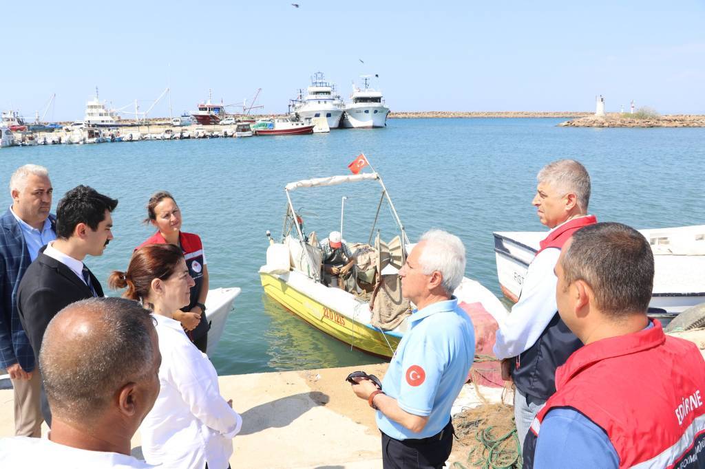 Balıkçılarla sohbet ederek barınaklarda incelemede bulunan Aksal, bereketli bir av sezonu diledi.