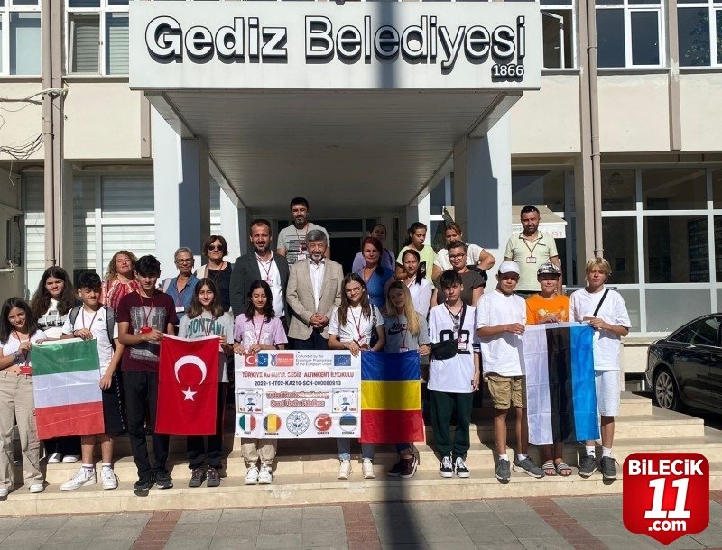 Kütahya’nın Gediz ilçesinde Altınkent Ortaokulu’nun İtalya, Romanya ve Estonya’daki ortakları ile yürüttüğü “Yapay Zeka Uygulamaları” çerçevesinde ilçede misafir olarak bulunan öğrenci ve öğretmenler, Belediye Başkanı Muharrem Akçadurak’ı ziyaret etti.