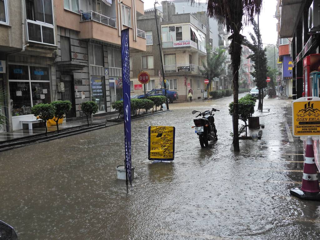 Balıkesir'in Erdek ilçesinde meydana gelen sağanak yağış cadde ve sokakları göle çevirdi.