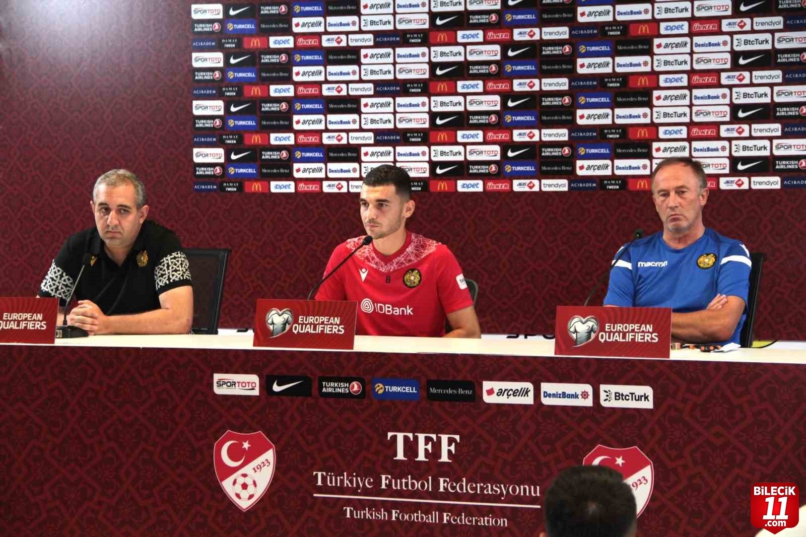 Ermenistan Milli Takımı orta saha futbolcusu Eduard Spertsyan da yaptığı açıklamada tribünlerden etkilenmeyeceklerini belirterek, “Hepimiz bu maçın ne kadar önemli olduğunu biliyoruz. Şuan 2. sırada bulunuyoruz. O yüzden bizim için çok önemli bir maç. Genelde futbolcular tribünlerin dolu olmasından yanadır. Burada tribünlerin dolu olması bizi etkilemeyecek. Oyun planlarımız hazır. Planları uygulayarak oyunumuzu oynayacağız” dedi.