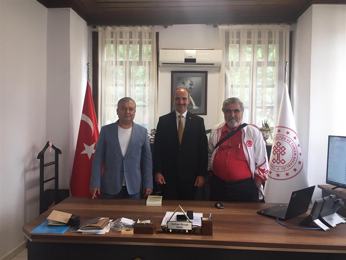 Ziyaretten duyduğu memnuniyeti dile getiren Müdür Bircan, yaptığı açıklamada, ”Hocamız, kıymetli büyüğüm, değerli başkanım Sadettin Bayram beyler ve araştırmacı yazar Hamiyet Bilgili hanımefendiyi İl Kültür ve Turizm Müdürlüğümüzde ağırlamaktan mutluluk duyduk. Kıymetli hocam değerli eserini imzalı olarak takdim ettiler. Kendilerine Kültür ve Turizm projelerimizi aktardık. Nazik ziyaretinden dolayı kendilerine şükranlarımızı sunuyoruz.” dedi.