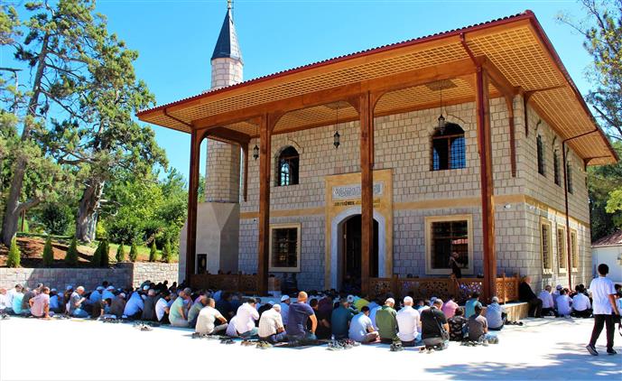 Söğüt Ertuğrulgazi Türbesi yerleşkesinde inşaatı biten Ertuğrulgazi Camii, ilk Cuma namazı ile ibadet etmek isteyen vatandaşlara kapılarını açtı.