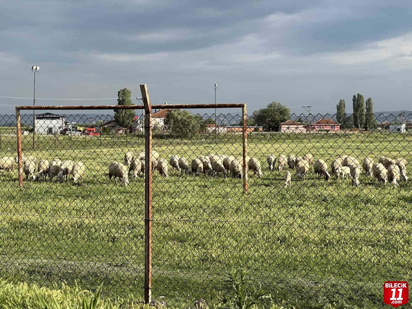 Eskişehir Muttalip Mahallesi’nde uzun zamandır kullanılmayan bir futbol sahası koyunların otlama alanı oldu.