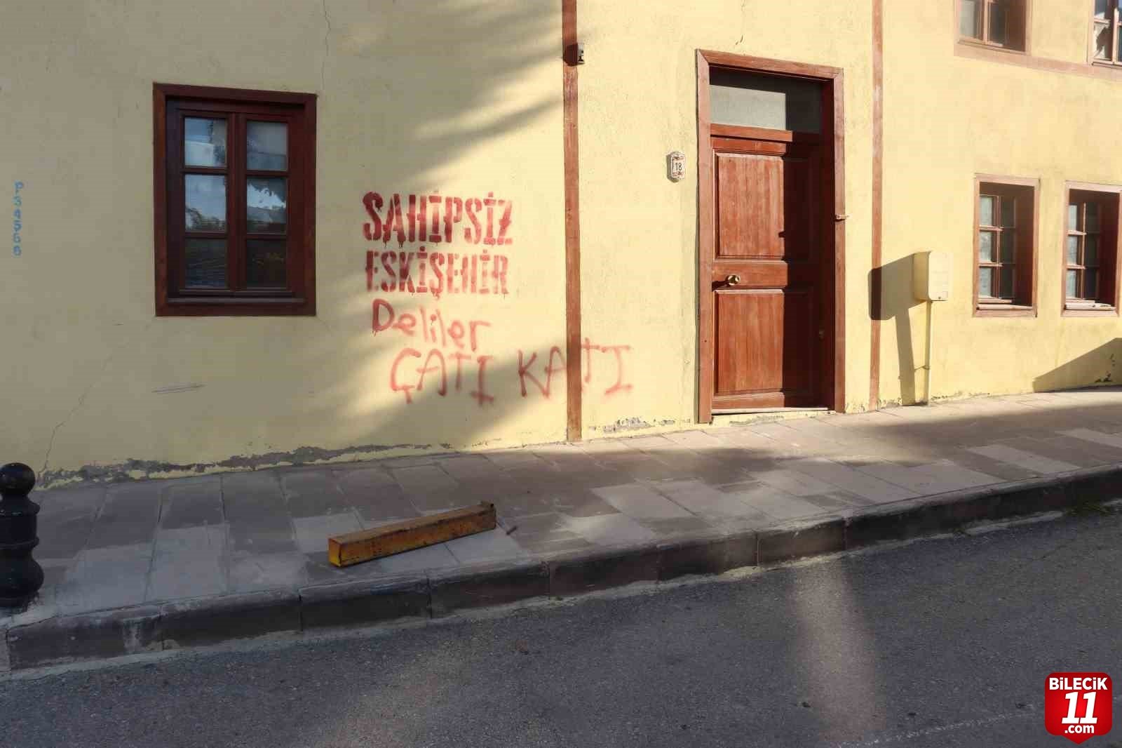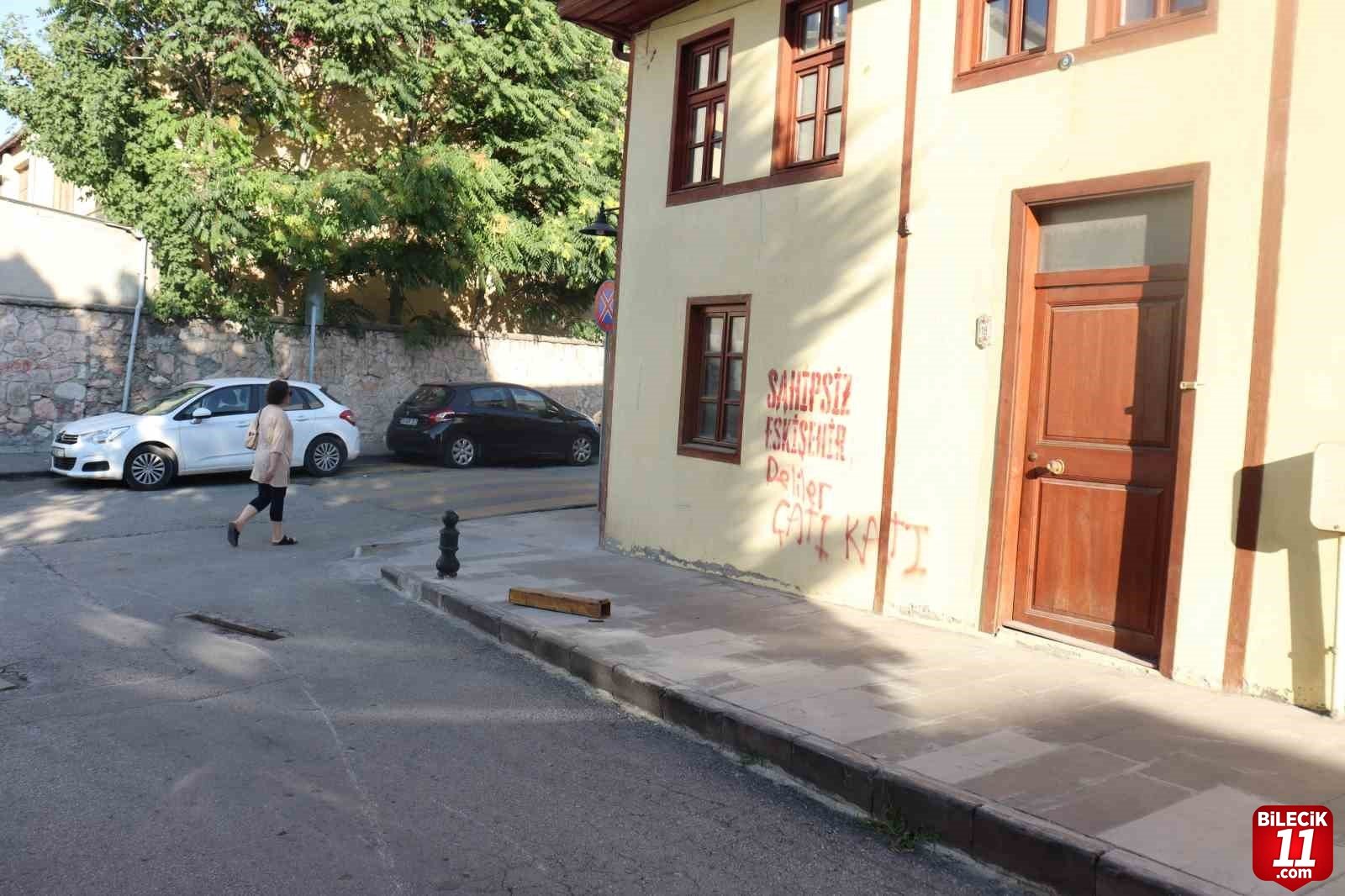 Odunpazarı İlçesinde bulunan Malhatun sokakta ki bazı tarihi evlerin duvarında ‘Sahipsiz Eskişehir’ yazılarının görünmesi dikkat çekti. Her geçen gün yazıların arttığını belirten vatandaşlar ise duruma tepki gösteriyor. Yazıyı, kimin ne amaçla yazdığını bilmediğini söyleyen çevre sakinleri, Tarihi Odunpazarı Evlerinin duvarına yazı yazmanın değerlere hakaret olduğunu ifade etti. – İHA