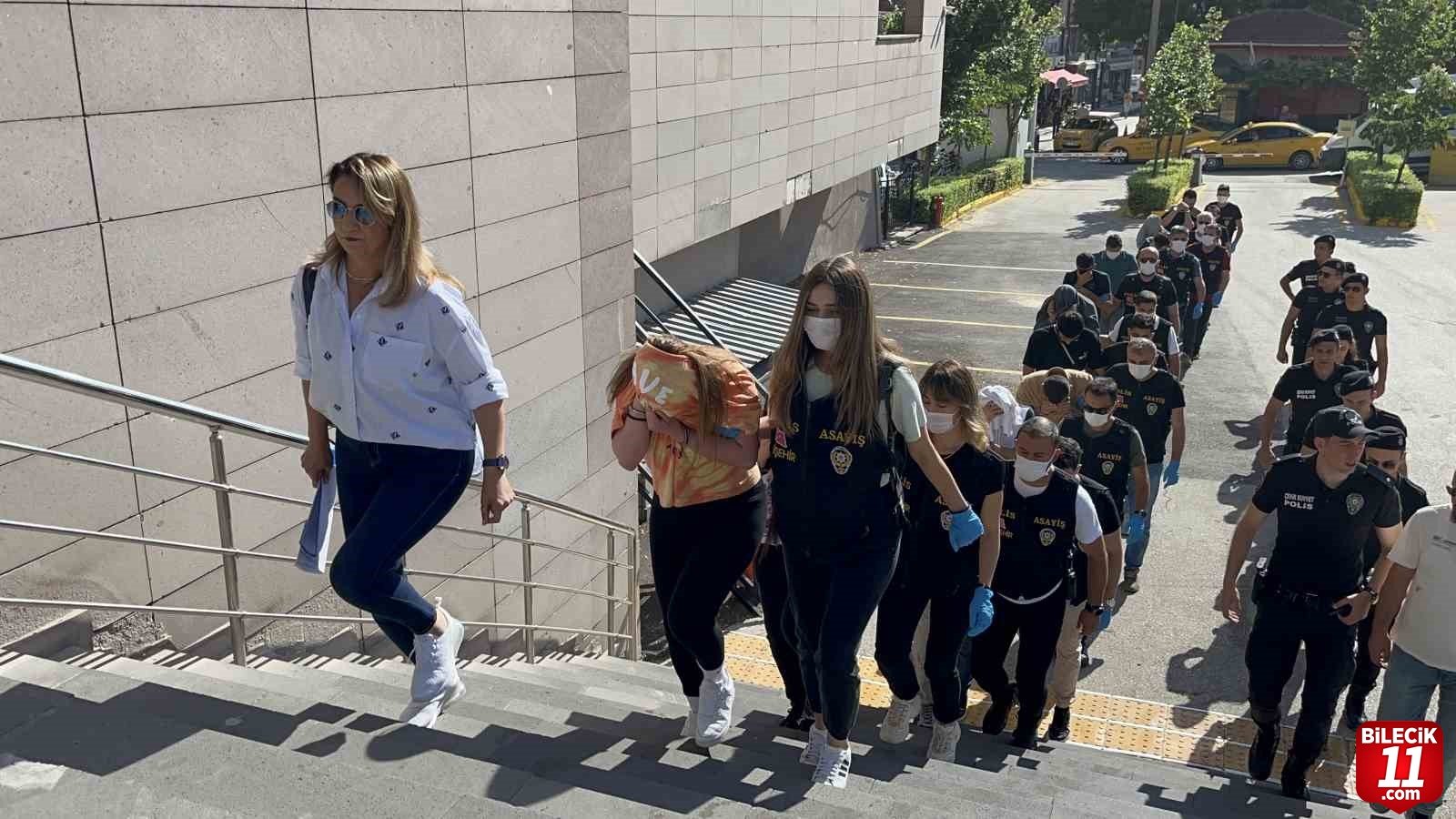 Eskişehir merkezli 7 ilde gerçekleştirilen fuhuş operasyonunda yakalanan 2’si kadın 14 kişi, emniyetteki işlemlerinin ardından adliyeye sevk edildi.