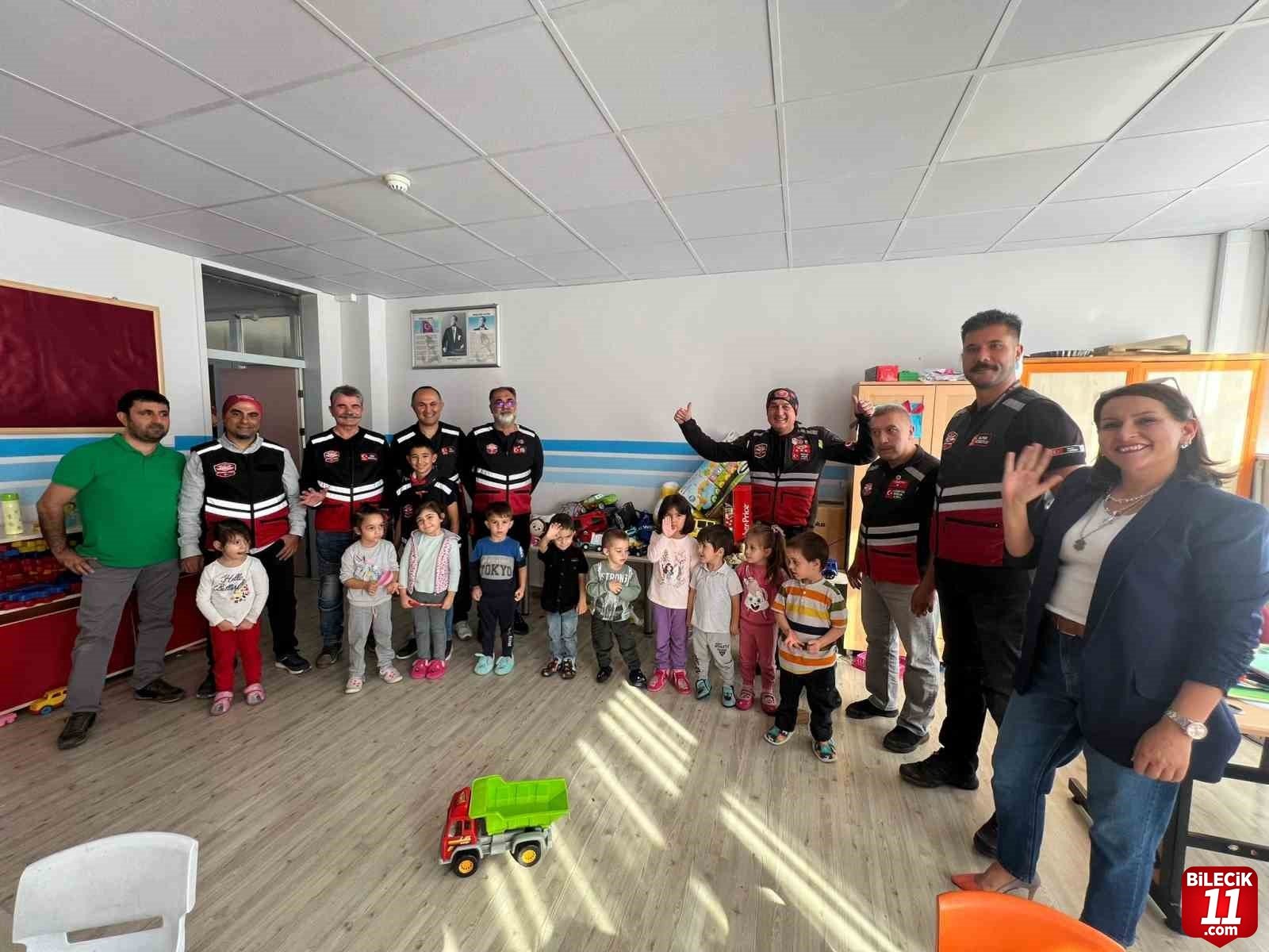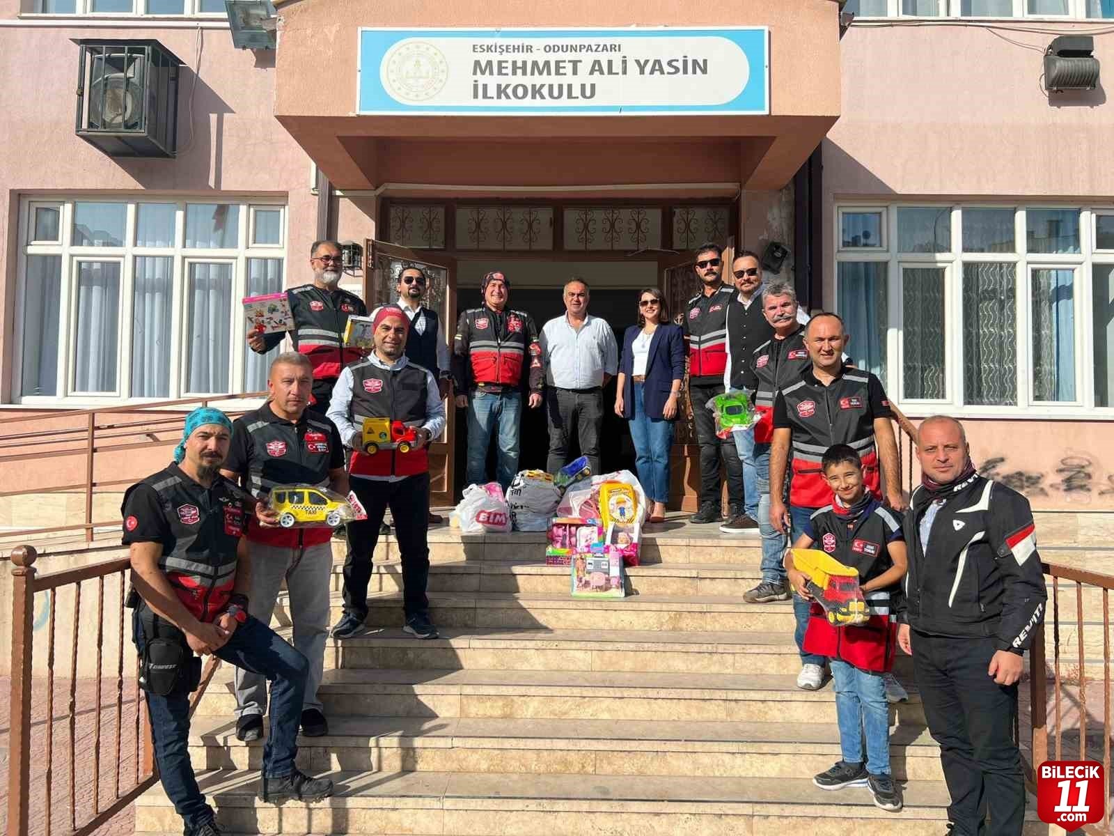 Eskişehir’de bir motor derneği ve Eskişehir İlgili Babalar Platformu topladıkları 444 oyuncağı anaokulu öğrencilerine dağıttı.