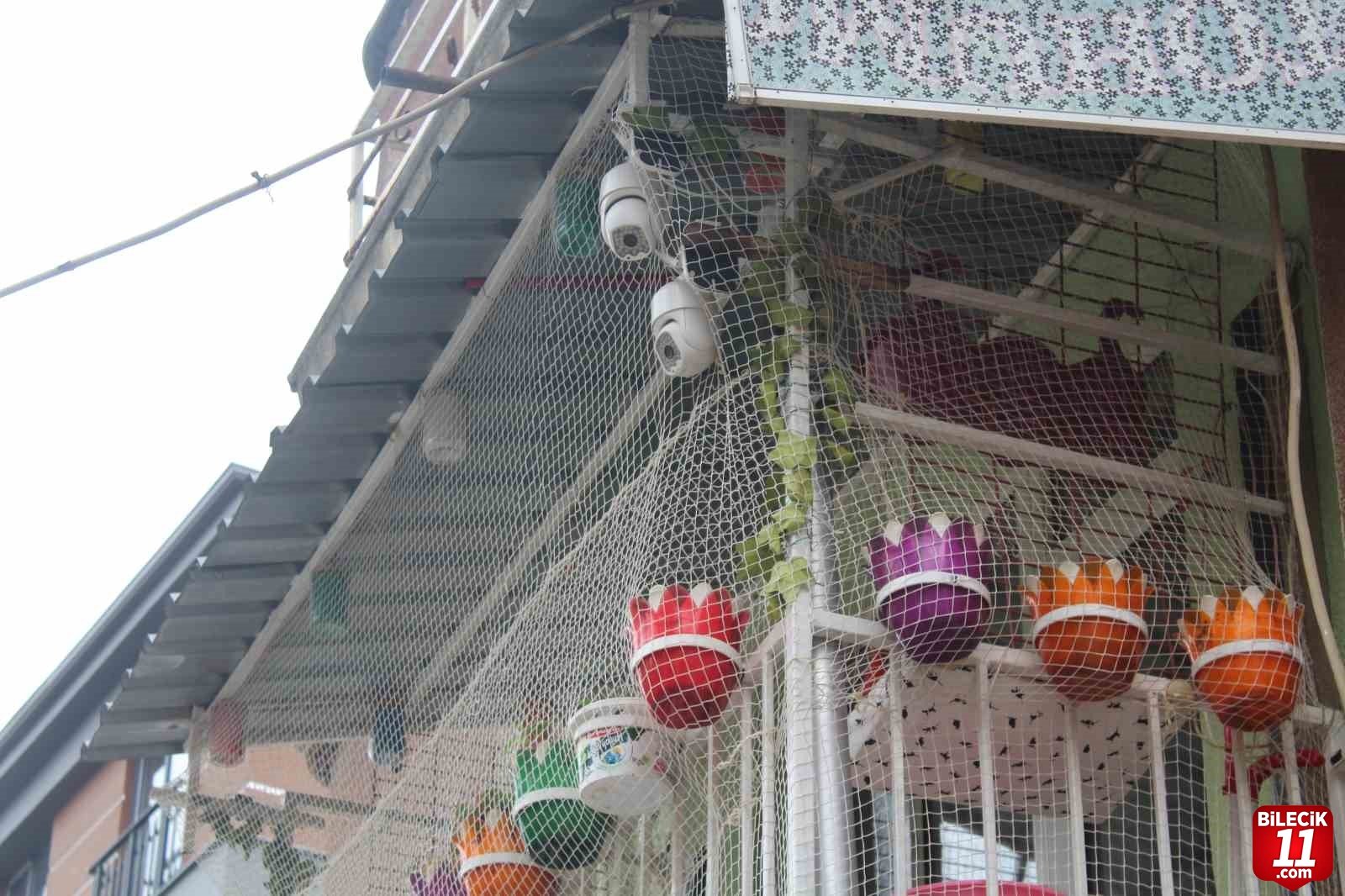 Eskişehir’de bir vatandaşın rengârenk saksıların ve bir çift güvenlik kamerasının yer aldığı evinin balkonu bulunduğu sokakta ilgi odağı oluyor.