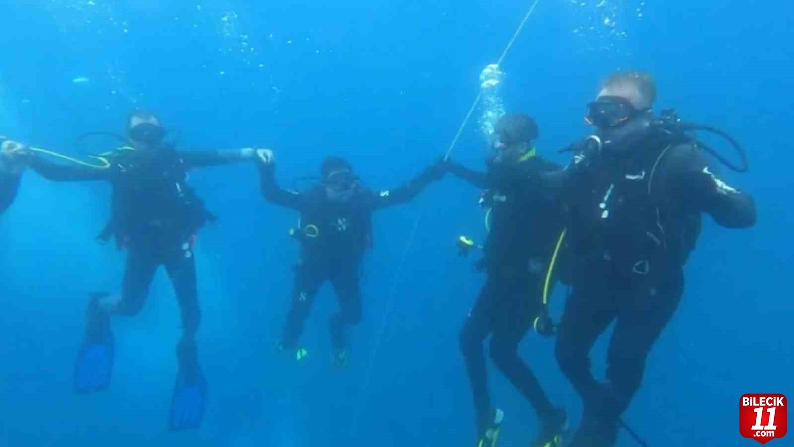 Çanakkale’ye denize dalmak için giden Eskişehirli dalgıç grubu su altında halay çekip renkli görüntülere neden oldu.