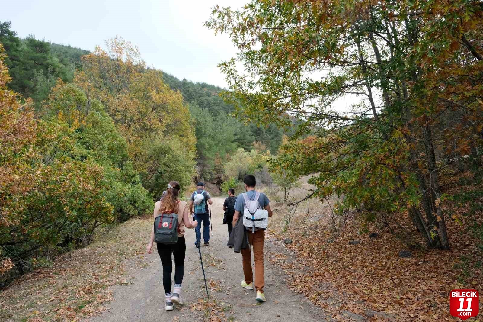 Eskişehirli doğa yürüyüşçüleri, ormanda 18 kilometrelik mesafeyi aşarken, sonbahar manzaralarını da fotoğraflamayı ihmal etmedi.