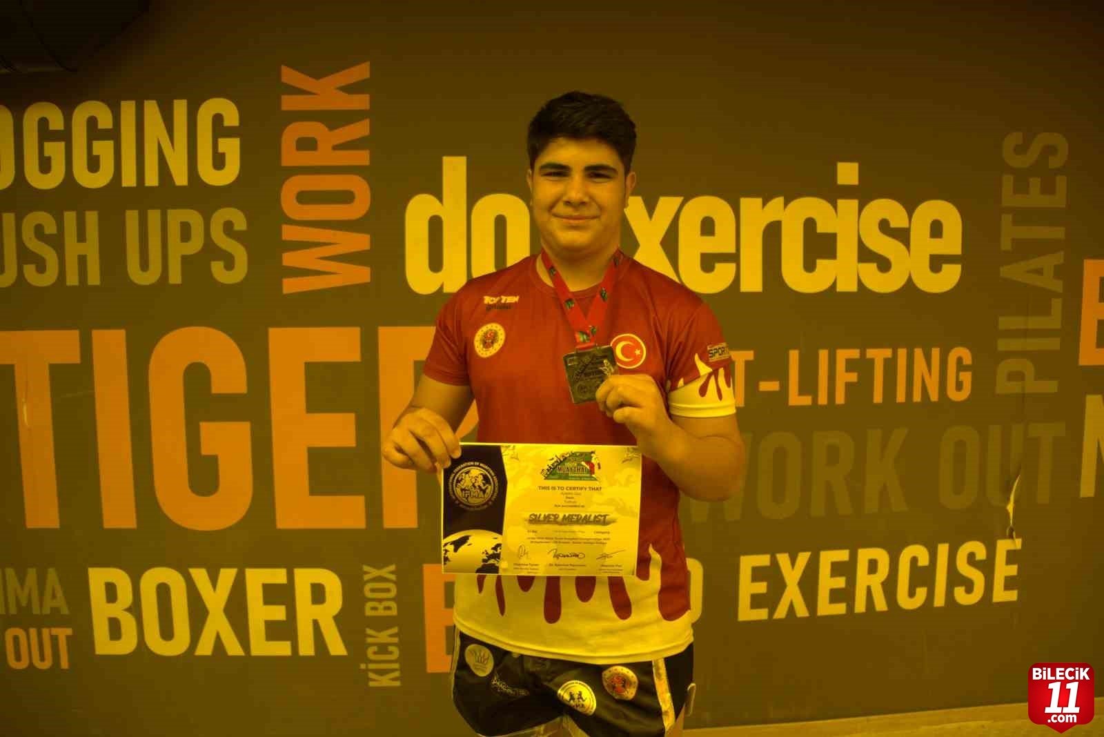 Eskişehirli sporcu Aytekin Güç, Antalya’nın Kemer ilçesinde 29 Eylül – 8 Ekim tarihleri arasında düzenlenen Muay Thai Gençler Dünya Şampiyonası’nda ikinci olarak gümüş madalya kazandı. 65 ülkeden bine yakın sporcunun katıldığı şampiyonada +71 kilo kategorisinde dünya ikinciliğini elde eden 14 yaşındaki sporcu ve antrenörü Yüksel Çotuk madalya kazanma başarısını anlattı. Dünya ikincisi olmanın çok iyi bir olduğunu ifade eden genç sporcu Aytekin, saatlerce antrenman yaparak başarı kazandığını dile getirdi. Başarılı sporcunun antrenörü Yüksel Çotuk ve yardımcı antrenörü Ömer Çalhan ise Aytekin Güç’ün gelecek yıl düzenlenecek şampiyonlarda altın madalya kazanacağına inandıklarını ifade etti.