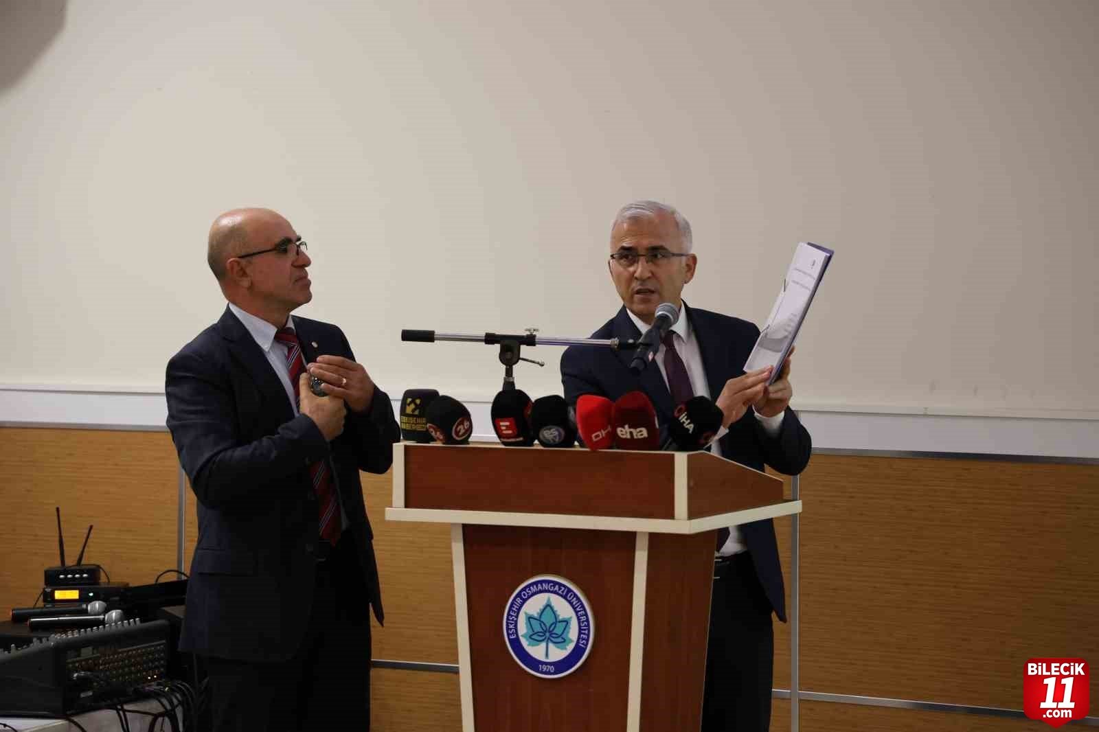 ESOGÜ Tıp Fakültesi Hastanesi’nin hizmetlerini anlatarak konuşmasına başlayan ESOGÜ Rektörü Prof. Dr. Kamil Çolak, “Üniversitemiz, yaklaşık 2 milyon 800 bin metrekarelik alana sahip bir üniversite. 8 ayrı yerleşkede eğitim öğretim faaliyetlerimize devam ediyoruz. Sarıcakaya, Çifteler, Mahmudiye gibi ilçelerimizde de yüksekokullarımız bulunuyor. Eskişehir Osmangazi Üniversitesi olarak, 13 tane fakültesi, 6 meslek yüksekokulu, 4 enstitüsü, 1 yüksekokulu ve 40 ayrı merkeziyle öğrencilerimize, şehrimize katkıda bulunmaya çalışıyoruz. Diğer taraftan çok tabii büyük bir üniversiteyiz, 30 binden fazla öğrencimiz var. Bunun yanında yaklaşık 4 bin idari personel ve bin 700’e yakın akademik personeliyle yani 5 bin 700 civarında akademik personeliyle çok büyük bir camiayız. Eskişehir Osman Gazi Üniversitesi Hastanesi de bildiğiniz gibi sadece Eskişehir’de değil bölgede çok önemli bir hastane. Bilecik, Kütahya, Afyonkarahisar dahil olmak üzere çevredeki illere de hizmet veriyoruz. Oralarda hastalarımız hastanemize geliyorlar. Hatta zaman zaman İstanbul’dan, Ankara’dan hastalarımız üniversitemiz hastanesinden hizmet alıyorlar. Bu bağlamda bir bölge hastanesi konumunda bulunmaktayız. Yıllık yaklaşık 1 milyon 200 bin civarında poliklinik hizmeti veriliyor hastanemizde. Yine yıllık 50 binden fazla hastaya servis hizmeti sunuluyor. Yıllık yaklaşık 25 bin civarında ameliyat yapılan bin yataklı çok büyük bir hastaneye sahibiz” dedi.