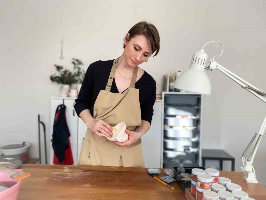 Hobi olarak başladığını ve daha sonra kendini geliştirerek çeşitli objeler yapan Aslı Nalbantoğlu, yurt içi ve yurt dışına e-ticaret üzerinden ürünlerini satarak gelir elde ediyor. Farklı sektörlerde ve farklı iş kollarında tasarım konusunda edindiği tecrübeyi evinde kurduğu seramik atölyesinde birleştirerek çeşitli eserler ortaya çıkardığını ifade eden Aslı Nalbantoğlu, “Seramik çamuruyla ilk temasımda hissettiğim şey büyük bir özgürlük oldu. Birlikte çalıştığım arkadaşlarımda da gözlemlediğim, çamura şekil verirken gideceğiniz yönü, tasarladığınız ürünü hayal etmek, sizi zihinsel olarak bağımsız hale getiriyor. Çamurla olan münasebetinizde mekan ve zaman kavramlarından uzaklaşarak, tasarladığınız ürün üzerindeki beceriniz kadar özgürleşip her tecrübenizde bunu artırarak gelişiyorsunuz. Benim hobi olarak başladığım bu şahsi gelişim sürecim de, bugüne kadar farklı sektörlerde farklı iş kollarında tasarım konusunda edindiğim tecrübe ile birleşti. Ve seramiğin hayatımın büyük bölümünü kapsamasıyla arayışımın nihayete erdiğini fark ettim. Ve bu süreç devamında yaşam alanımı atölyeye çevirme fikrini beraberinde getirdi. Üretimini yaptığım ürünlerin teknik ve tasarım olarak yeterliliğini sağlayabildiğime kendim de ikna olduğumda e-ticaret vasıtasıyla da gelir elde etmeye karar verdim. Ürünlerimi yurt içinde ve yurt dışında e-ticaret platformlarında satışa çıkarttım. Kişisel üretimlerim ve e-ticaret haricinde kurumlar, sivil toplum kuruluşları ve okullarla birlikte çalışmalar yapıyoruz.